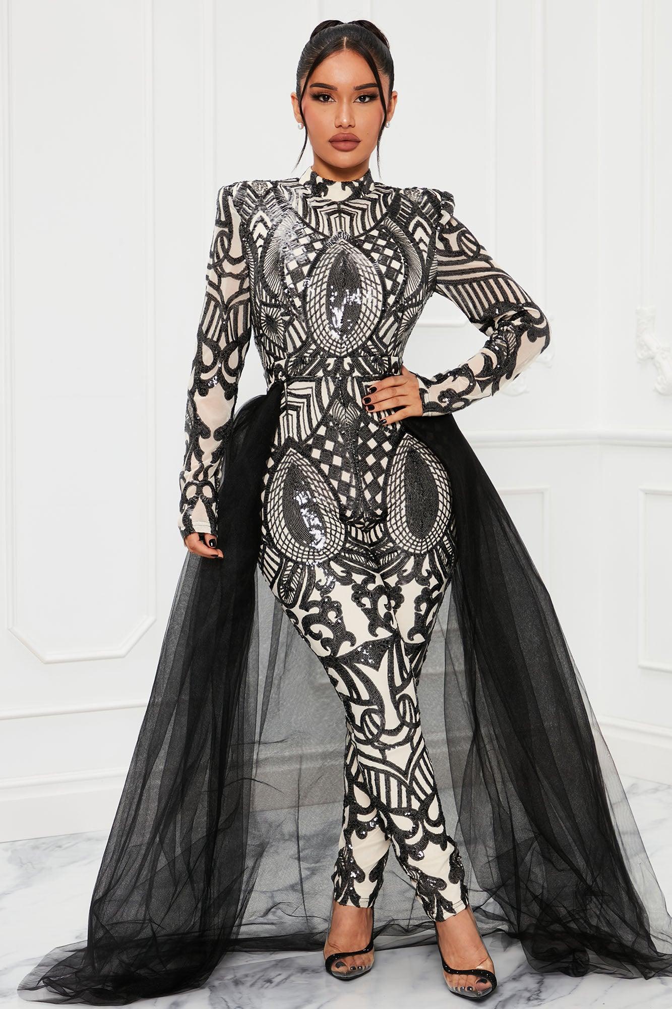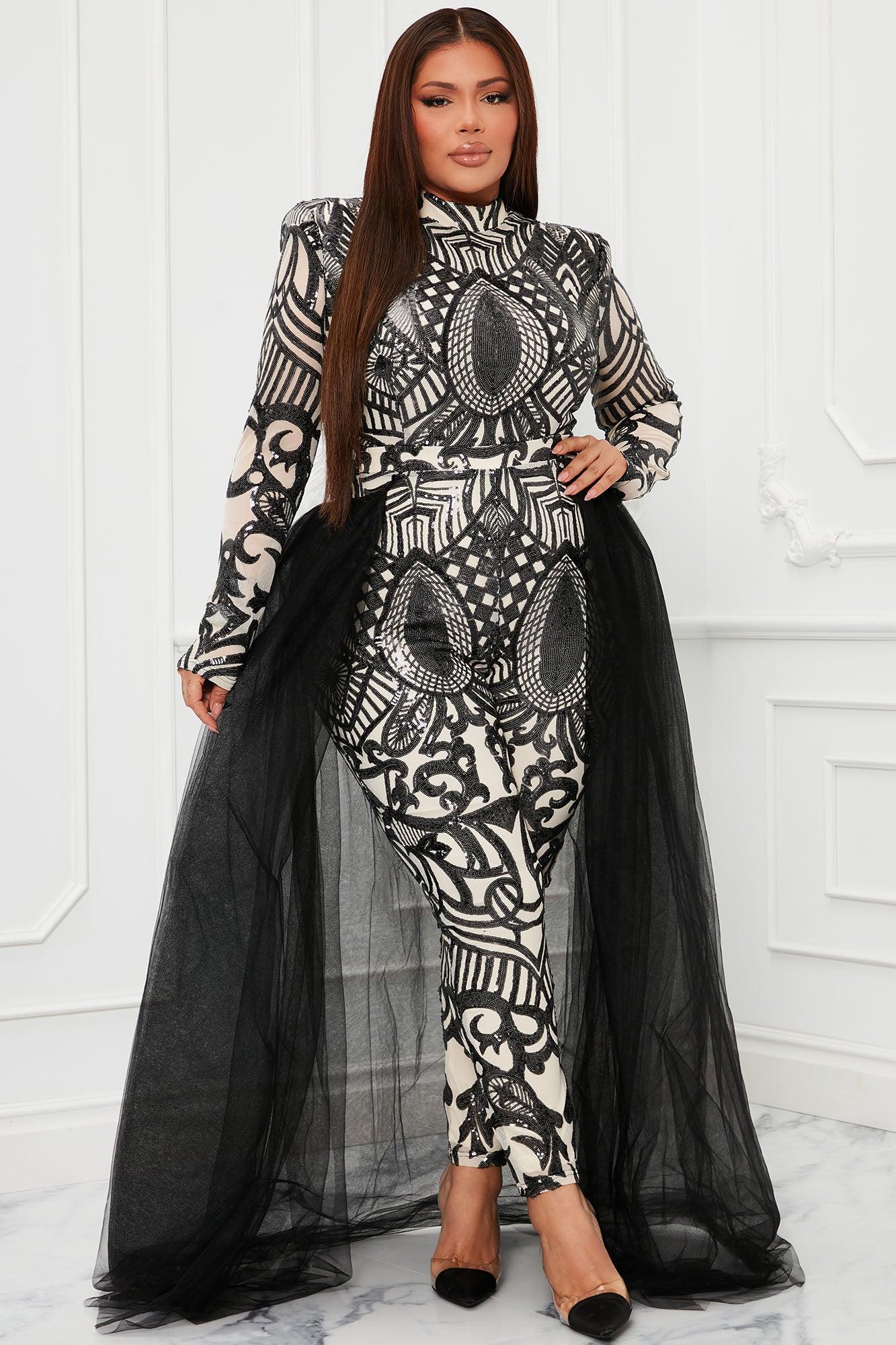 Bring The Drama Tulle Sequin Jumpsuit - Black/combo