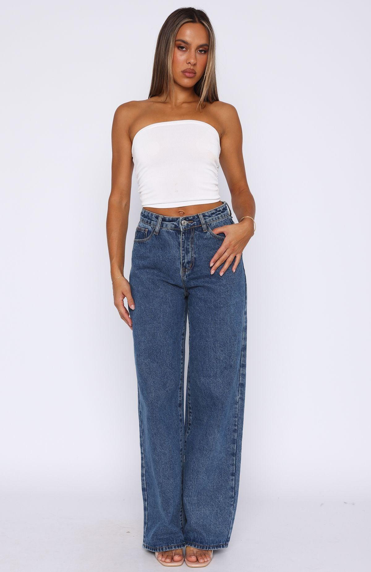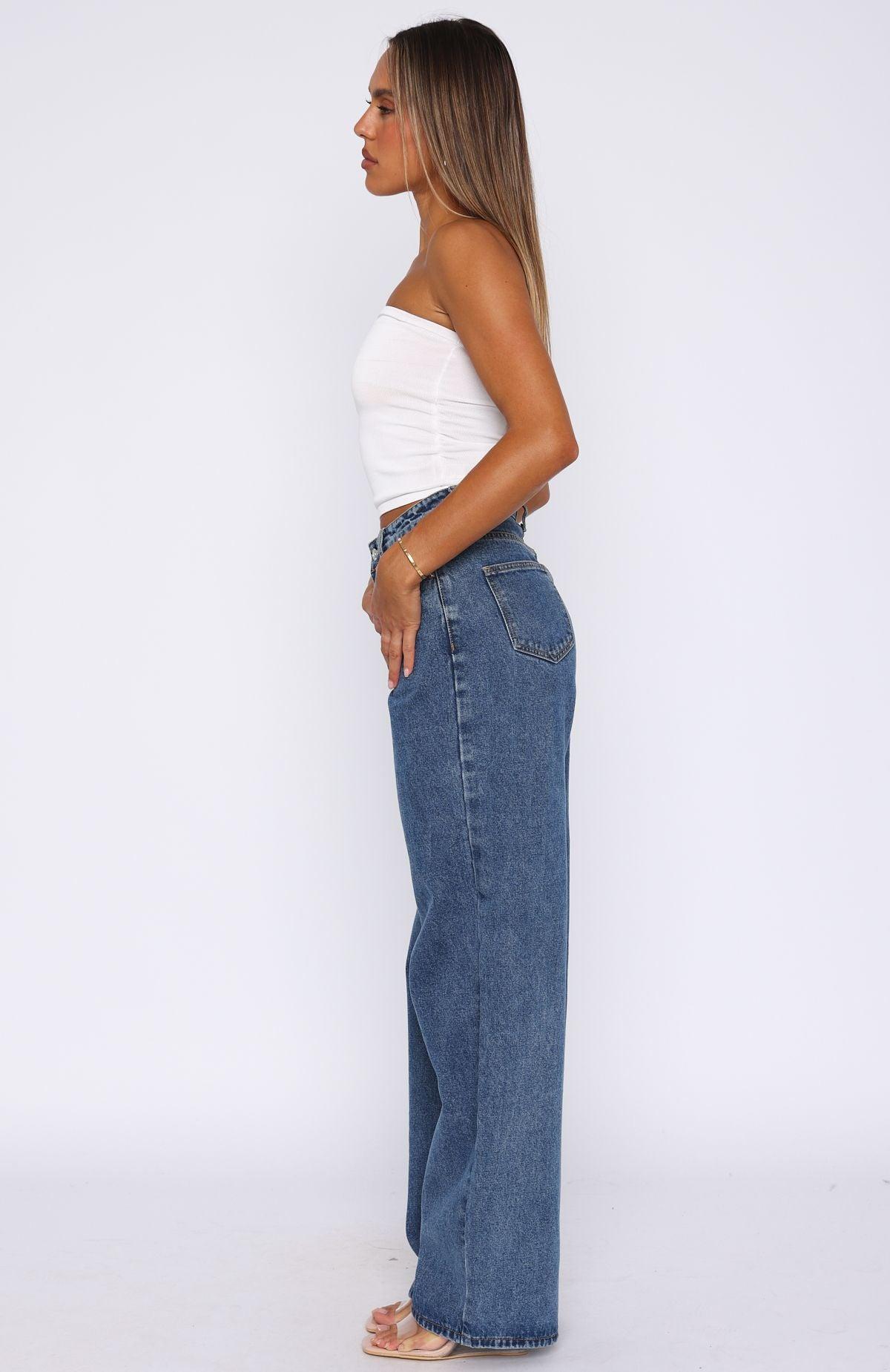 WHITE FOX DENIM Your most loved just got an upgrade! The Bring The Style High Rise Wide Leg Jeans Admiral Blue features a high waisted design, front zip and button closure, belt loops, wide leg design and 5 pocket design. We love this paired with a cute crop and sneakers for the ultimate IT girl fit! 81% Cotton 16% Polyester 3% Viscose Mik is 171cm & wears a S