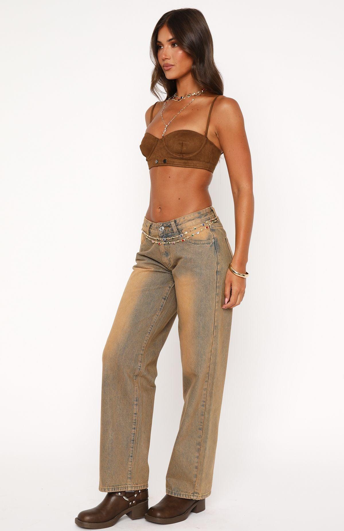 You can't look past a good classic. The Bring The Style Jeans Clay will be your new go-to. These low-rise jeans feature a zip and button closure, belt loops, wide leg design and 5 pocket feature. We love this paired with a cute crop and sneakers for the ultimate IT girl fit! 100% Cotton Ash is 166cm & wears an XS Dekota is 172cm & wears an S