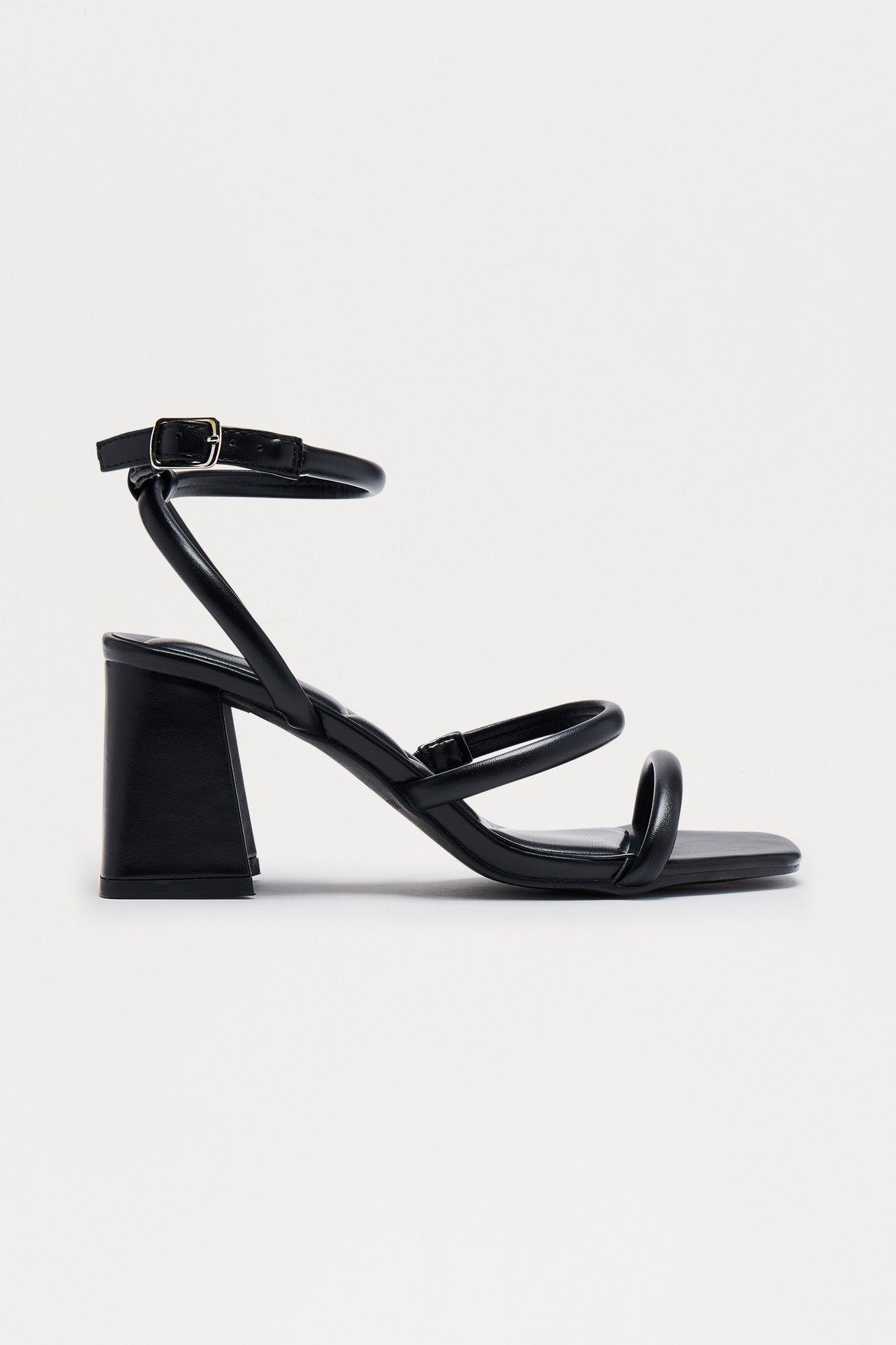 Brinkley Ankle Strap Block Heels - Black