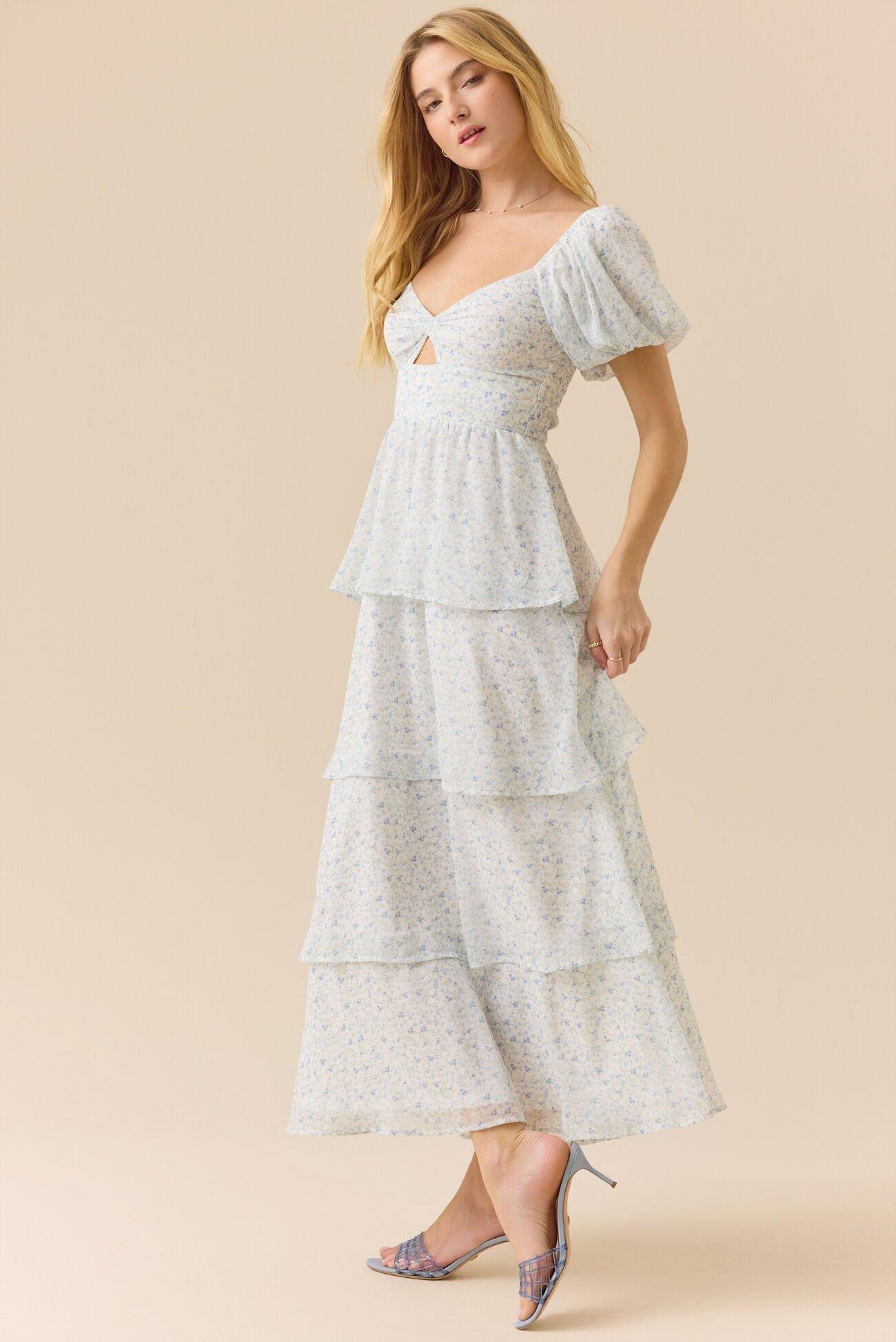 Brinley Puff Sleeve Tiered Maxi Dress