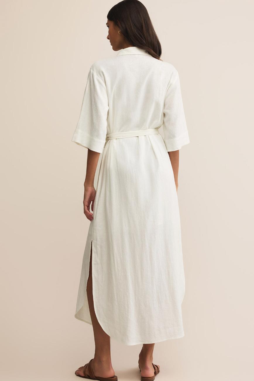 The Brise Linen Midi Dress blends timeless structure with breezy ease. Crafted from breathable linen, this dress features a classic collared neckline and a button-down front, adding a touch of tailored sophistication to its relaxed silhouette. The midi length offers graceful coverage, falling below the knee for a flattering, effortless drape.