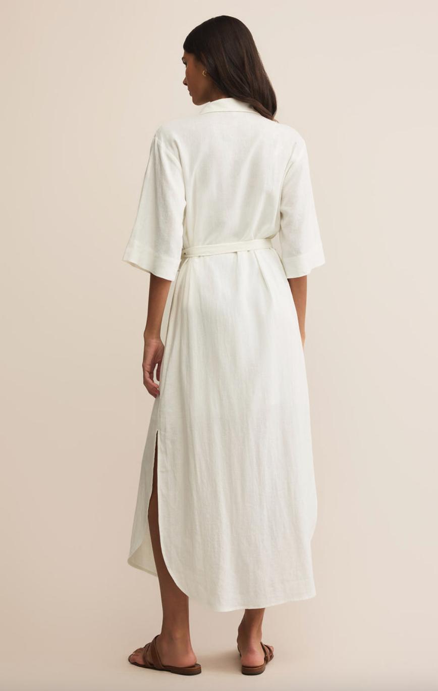 Expertly crafted with a washed linen blend, the Brise Linen Midi Shirt Dress will elevate your wardrobe with its relaxed yet refined silhouette. Featuring a collared neckline, 3/4 sleeves, and a removable self-belt, this dress offers both comfort and style. The lightweight fabric and high slit add effortless movement.