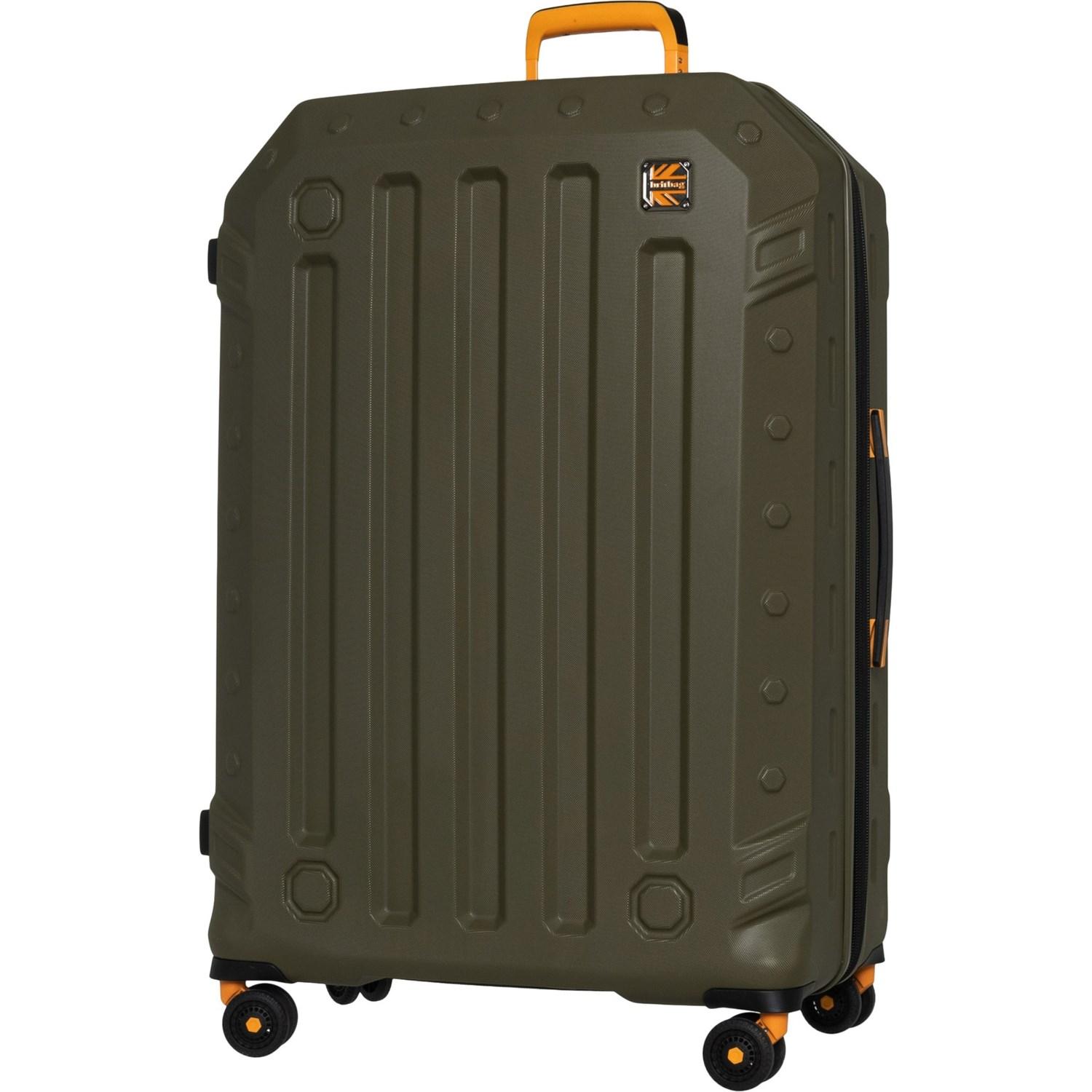 BritBag 32” Gannett Spinner Suitcase - Hardside, Expandable, Dark Olive-Cadium Yellow Highlights