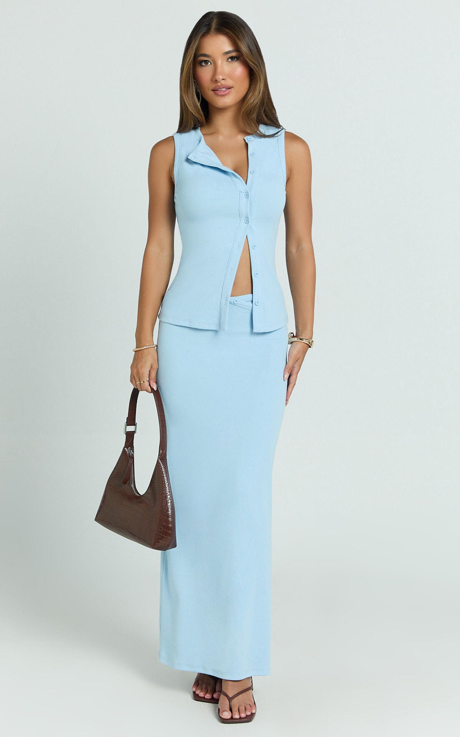 Transform your look with the Brittany Two Piece Set - your new go-to for effortless style that speaks volumes. This chic Ribbed Skirt Set in Pale Blue is the epitome of casual elegance, blending comfort and fashion in a way only Showpo can. Made from soft, breathable cotton, it promises to keep you comfortable whether you're running errands or catching up with friends on a leisurely afternoon.Product Details:Buttons detailCo-ord SkirtsCotton fabricCasual wearMidi lengthSleevelessSize and FitStudio model is wearing size XS / 6 AU / 2 US / 6 UK / 34 EUStudio model's height is 168cm / 5'6''Material and Care100% CottonLow / No stretch