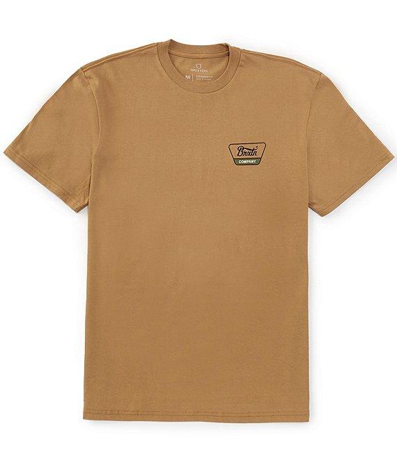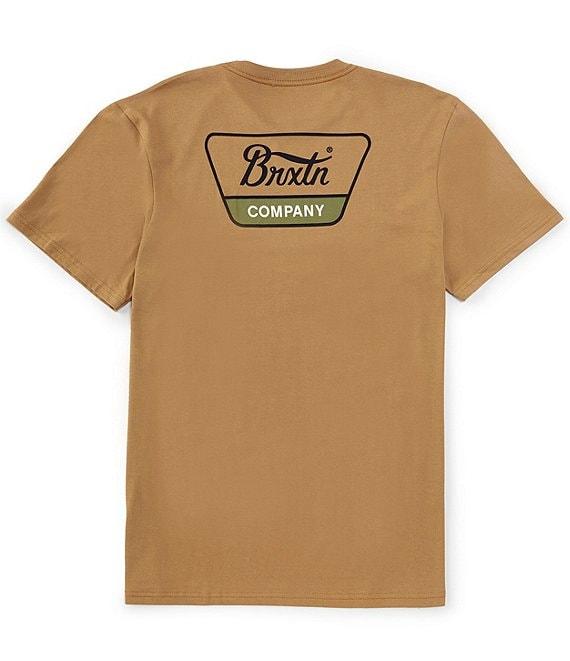 From Brixton, this t-shirt features: Crew neckline Short sleeves Small logo graphic on the left side of the chest Large logo graphic on the back Straight hem Pullover construction Cotton Machine wash/tumble dry Imported.