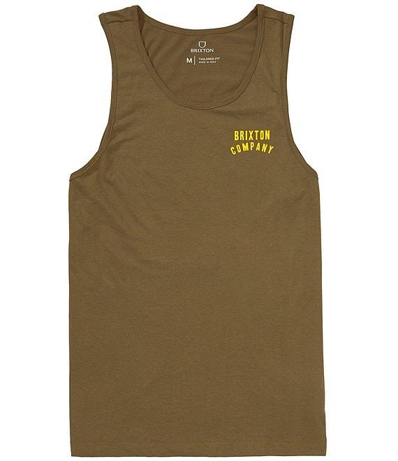 From Brixton, this tank top features: Crew neck Sleeveless Screen prints on the left side of chest and back Pullover construction Cotton/polyester Machine wash/tumble dry Imported.