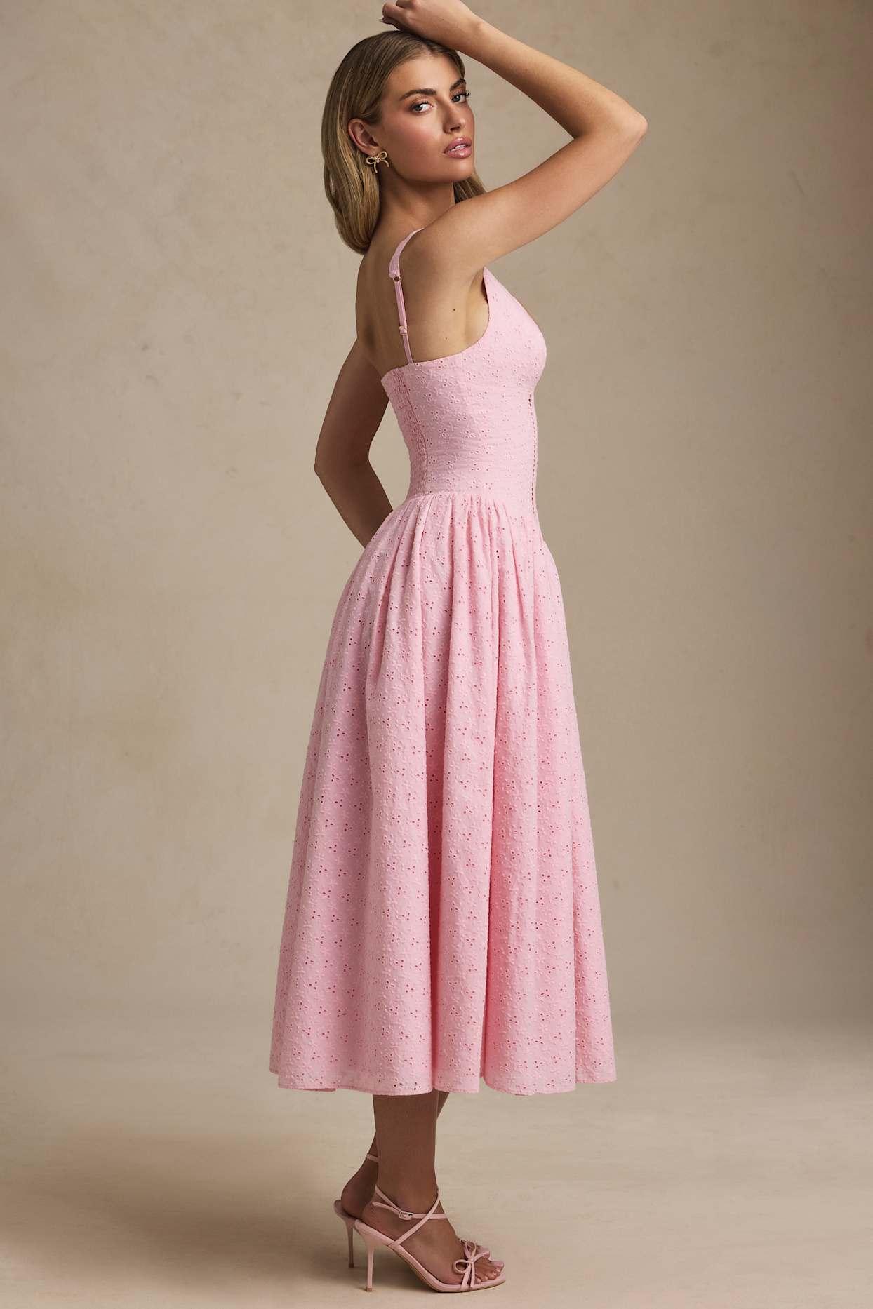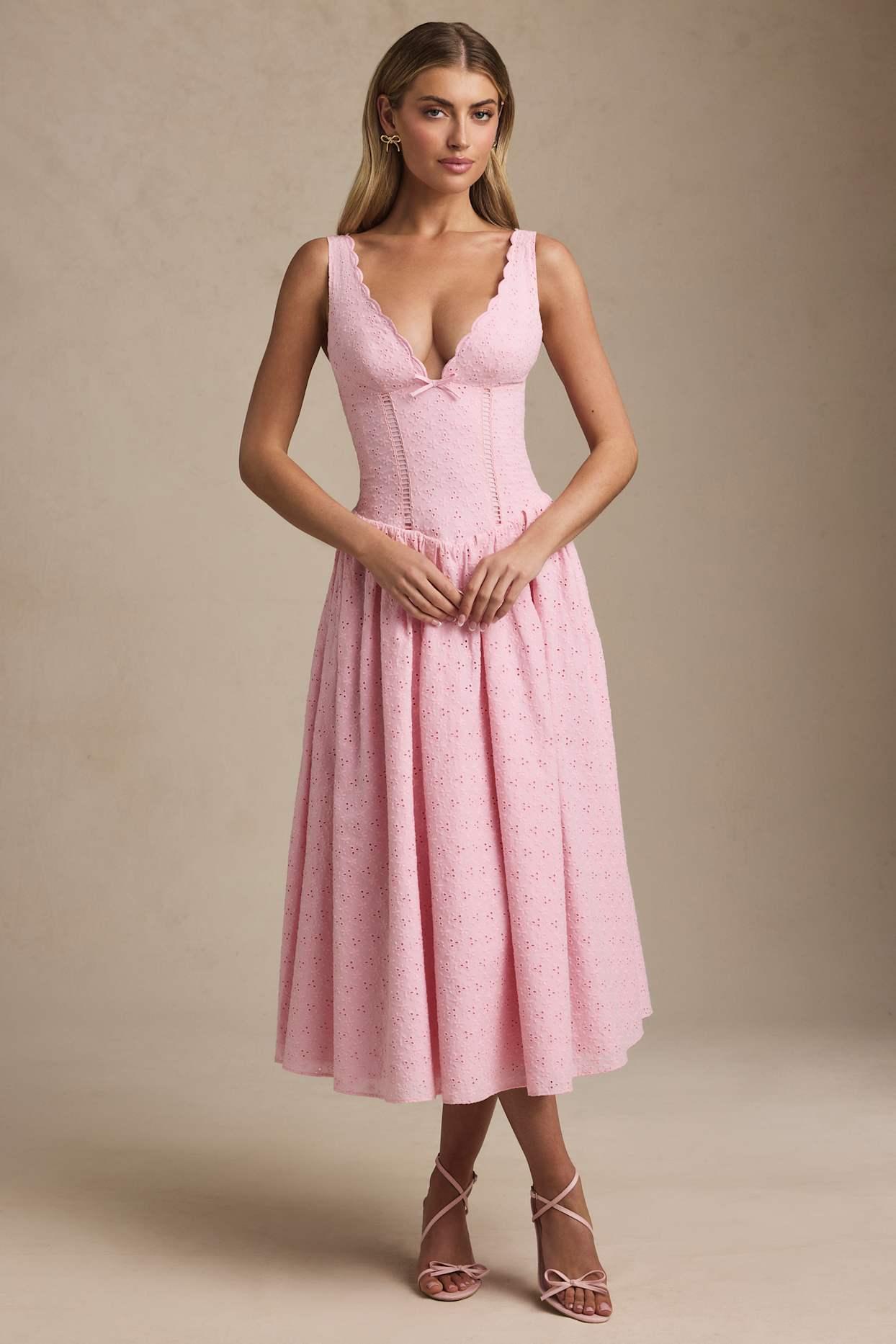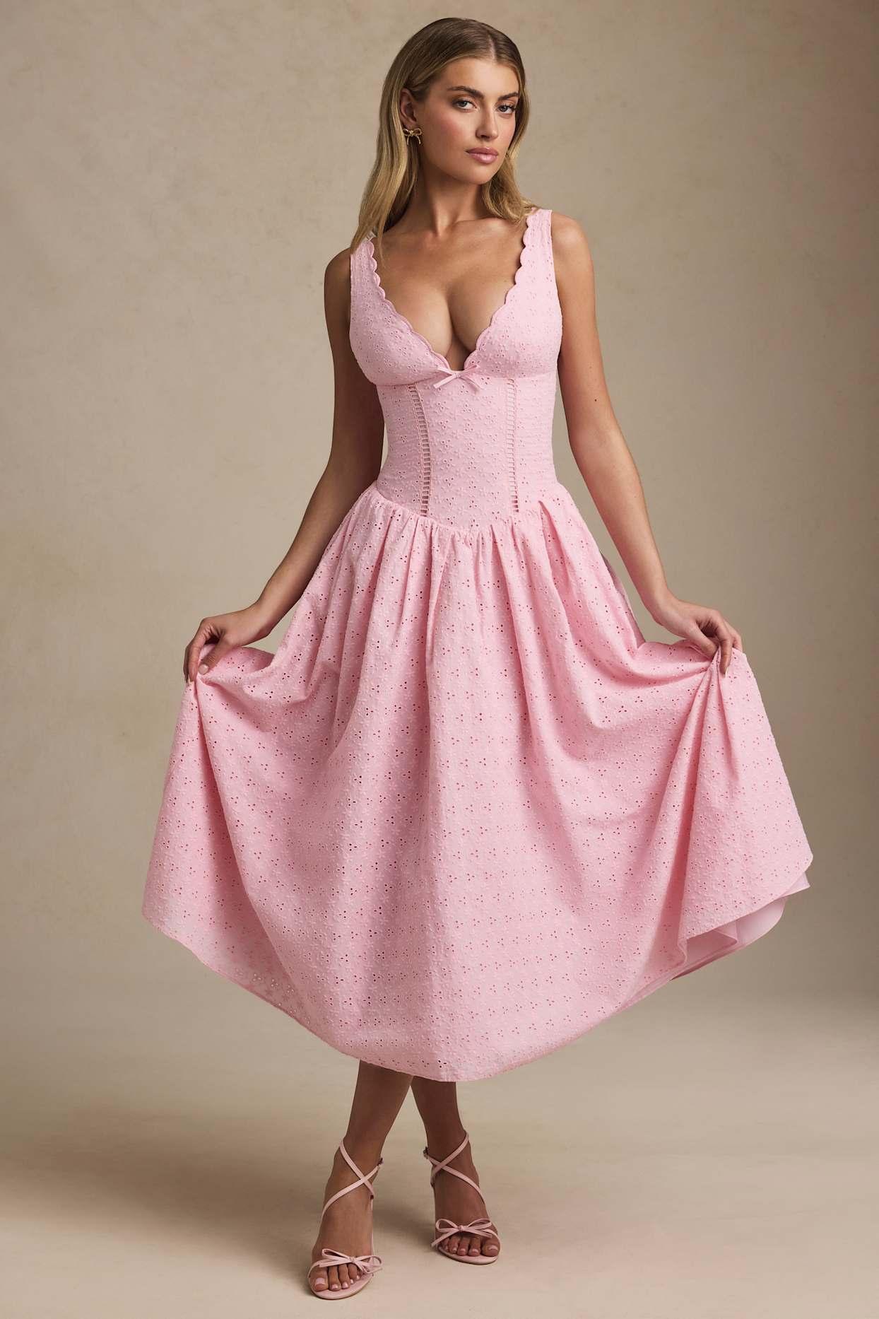Crisp silhouettes and the prettiest details. A summery style you’ll have on repeat, the Saidey midaxi dress is crafted from cotton broderie anglaise to a figure-enhancing silhouette with a fitted bodice and voluminous skirt underlaid with lightweight tulle. It’s framed with a scalloped V-neckline, features an elasticated shirred panel at the back for a comfortable fit, and is detailed with a delicate tonal bow at the front.Plunge V-neckAdjustable tapered shoulder strapsBroderie anglaise Tonal bow embellishmentV-shaped fitted bodiceShirred panel at backVoluminous skirt with tulle underlayerConcealed side zip fasteningA-line silhouetteMidaxi length, SNP to hem approx. 125cm based on a UK size 8Product code: 14112