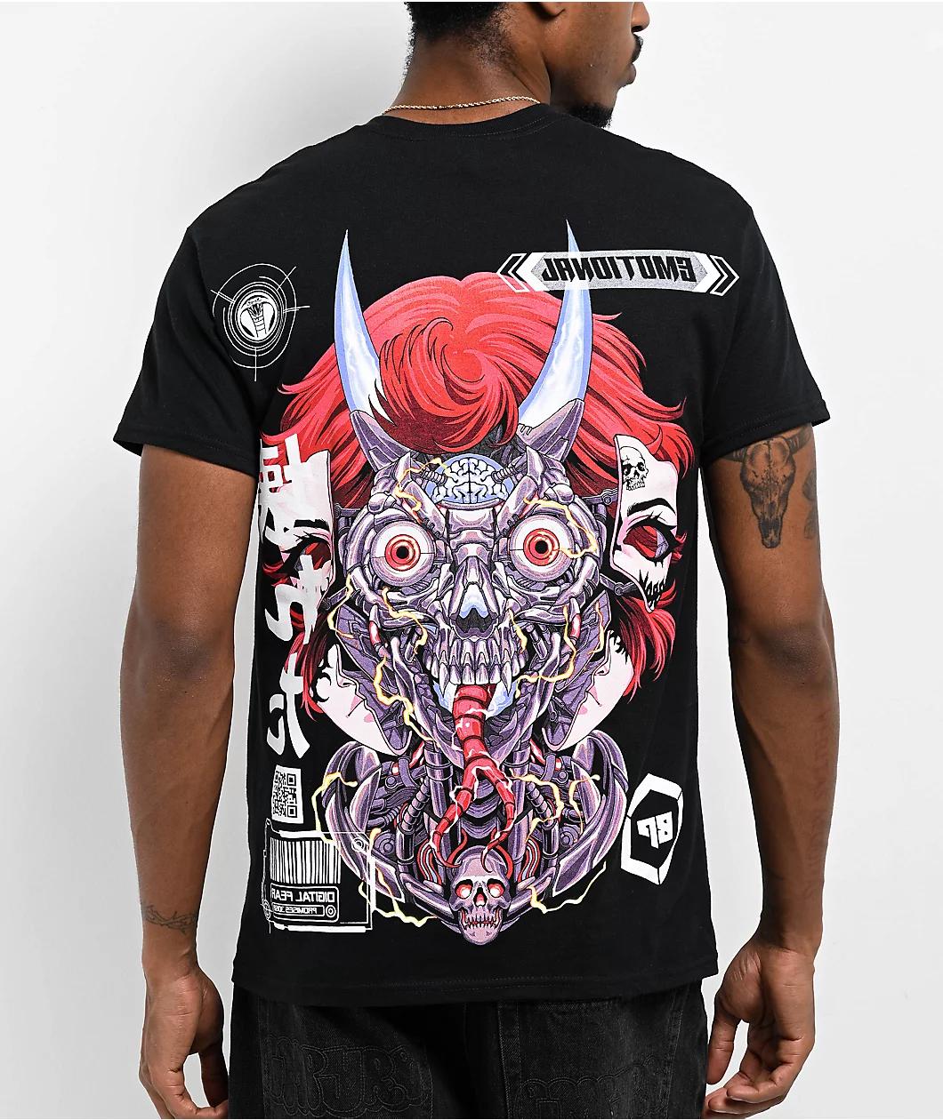 Inspired by Japanese art with an alternative theme, Broken Promises proudly presents the Artificial Euphoria t-shirt in a solid black cotton construction with elaborate printed graphics. Lending a casual fit with a ribbed crewneck collar, the front o