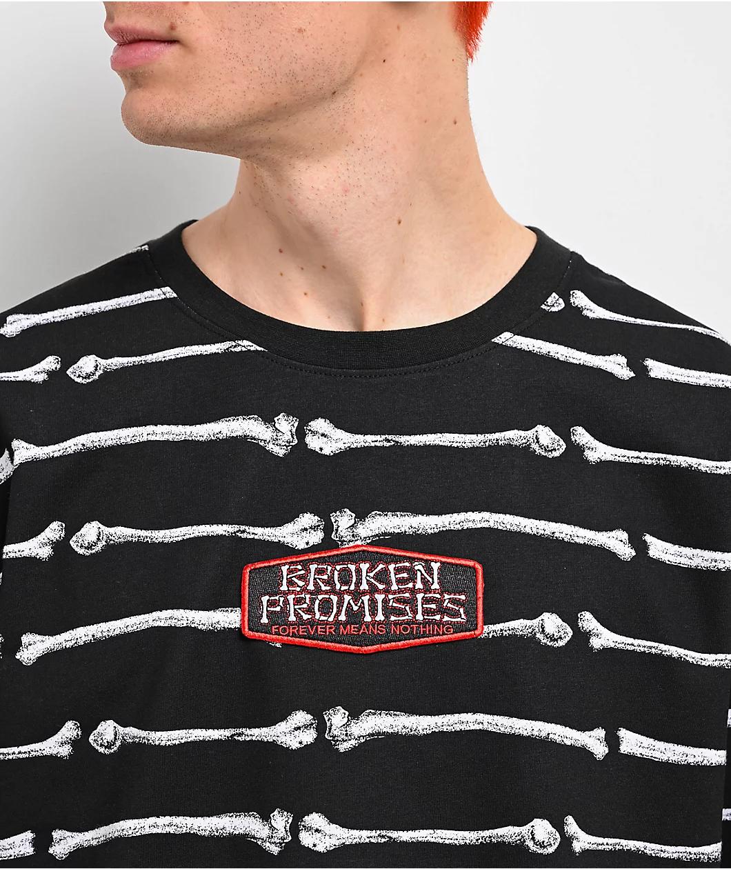 Boasting a striped, knit fabrication, the Bone Dry t-shirt from Broken Promises arrives in a ghoulish black colorway offering a macabre look with a luxury design.
