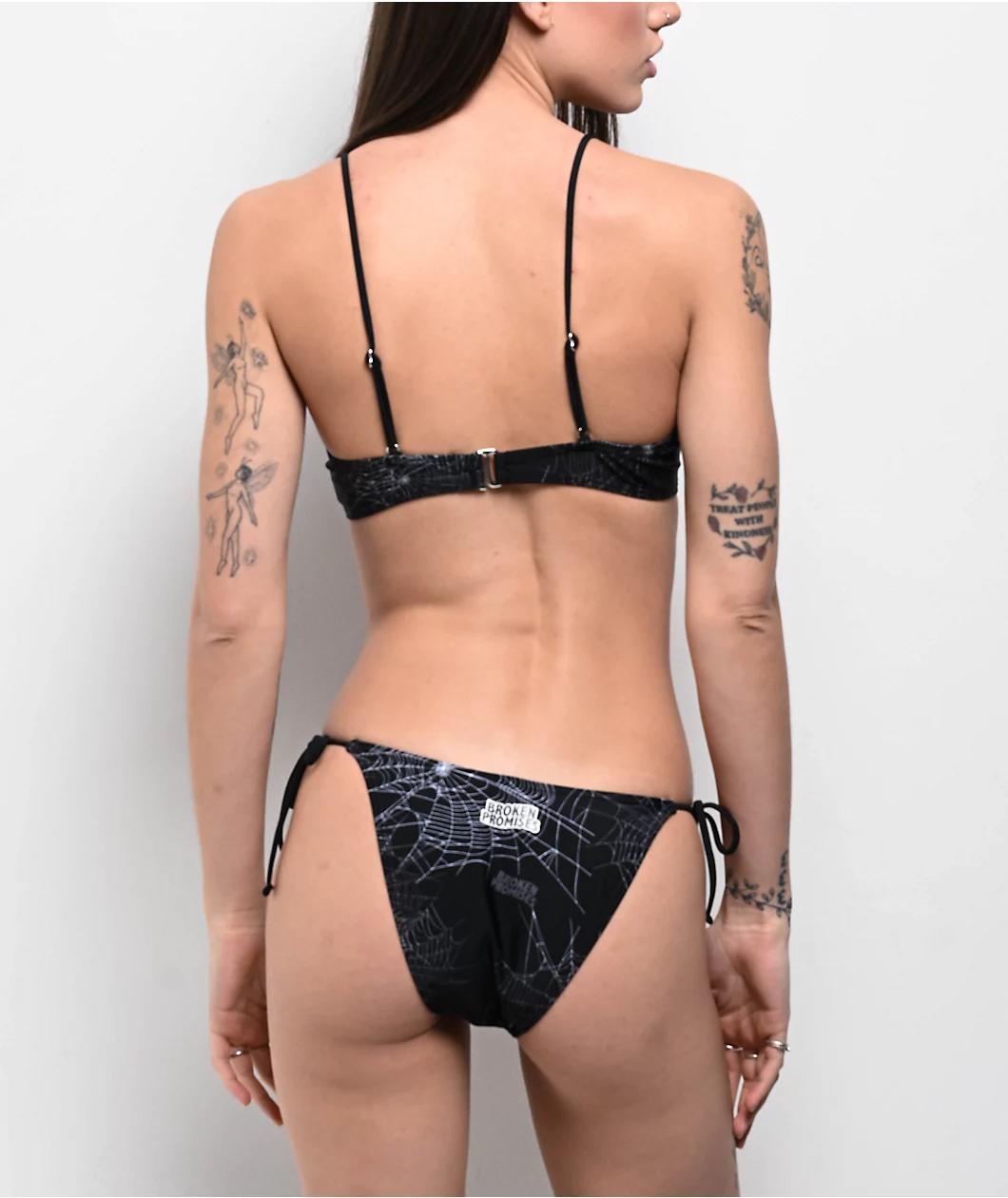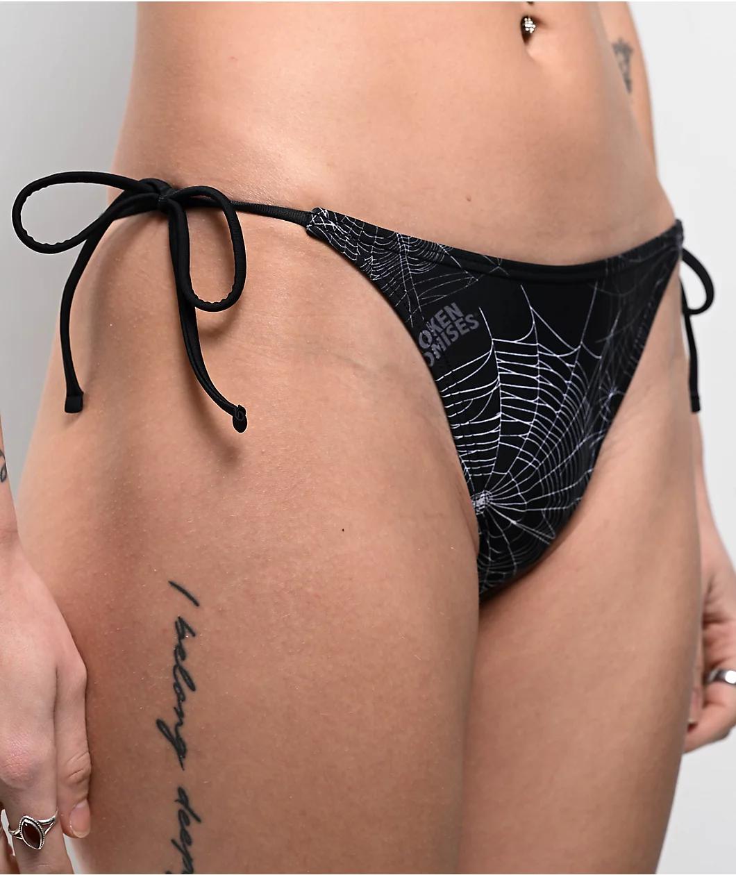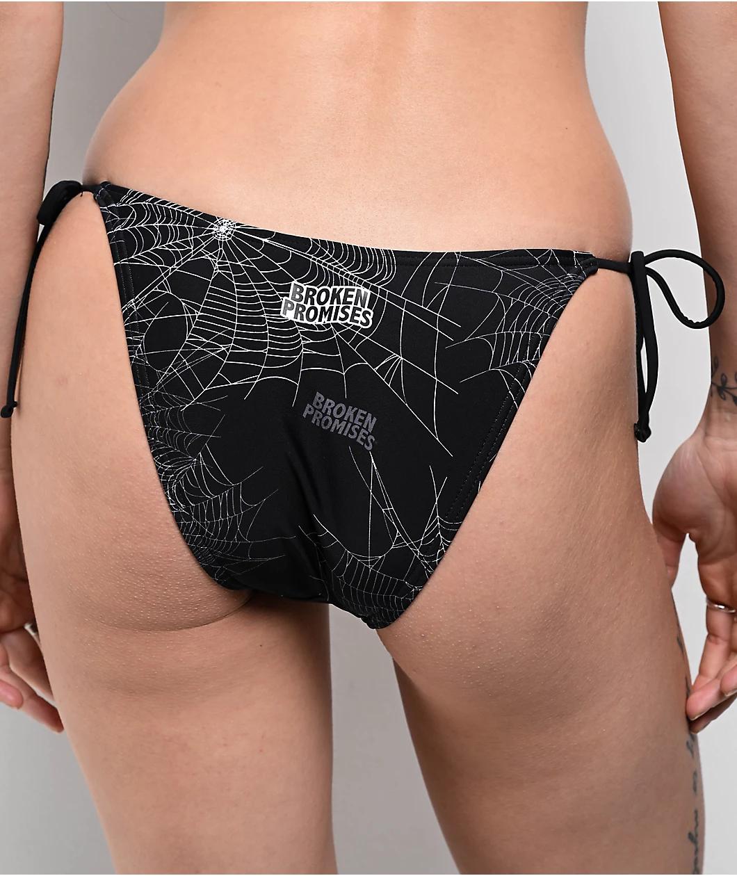 Broken Promises presents the Chrome Web high-leg bikini bottom in a black colorway with edgy, spiderweb graphics throughout. Designed with style and comfort in mind, the back of these swimsuit bottoms has screen-printed branding, while the adjustable