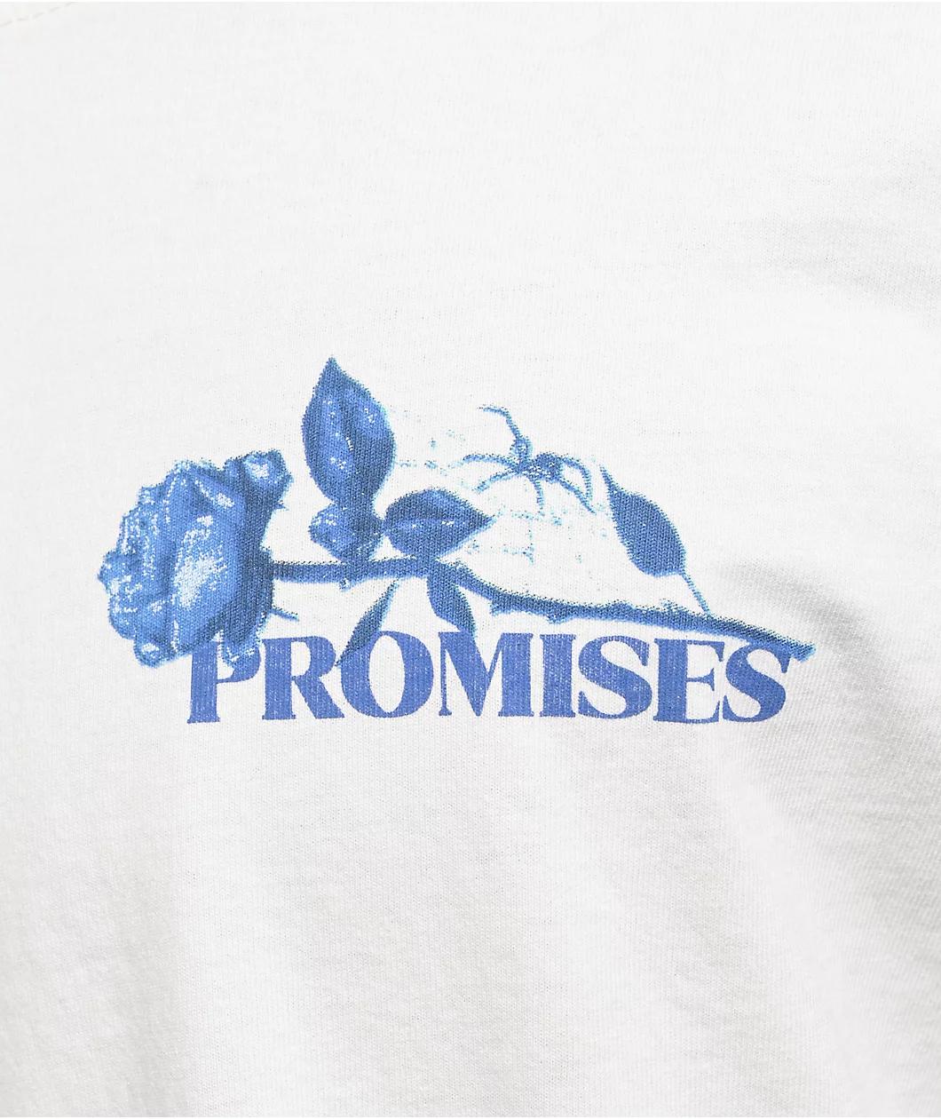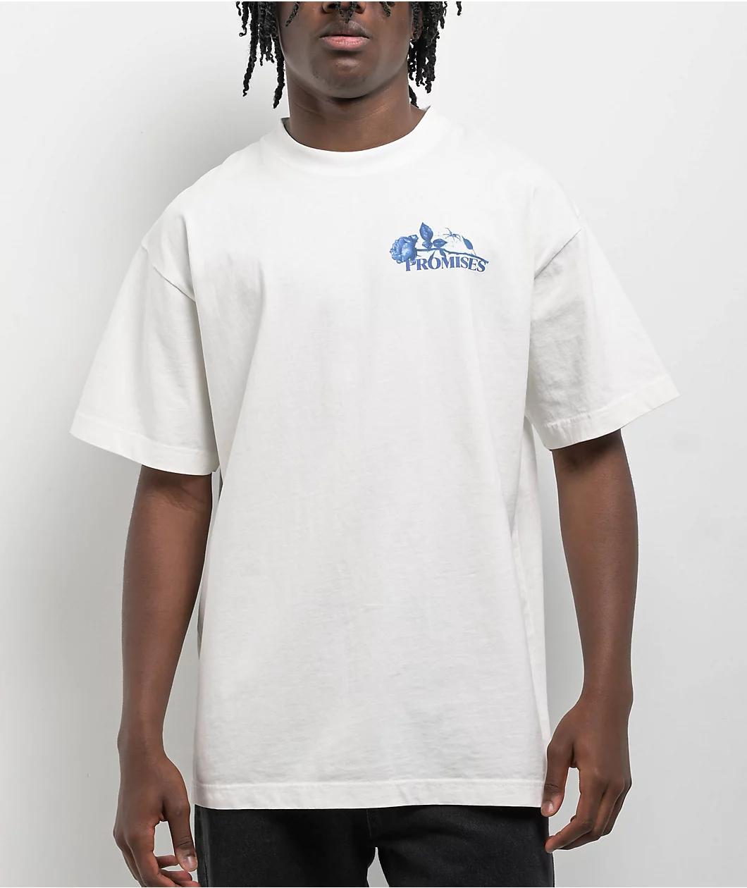 Add a downcast vibe to any outfit with the Cowgirl t-shirt from Broken Promises. The back of the white tee features blue monochrome artwork of a crying Cowgirl accompanied by text reading "Even Cowgirls get the blues". A blue rose on the left chest g