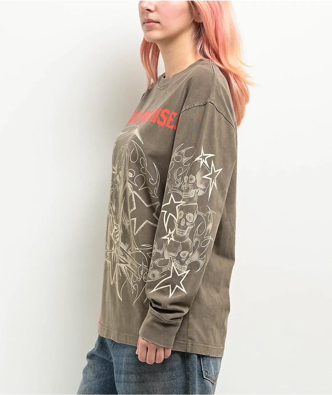 From Broken Promises, Fear The Reaper long sleeve t-shirt comes in a grey wash colorway with distressed accents on the ribbed finishes - producing an edgy, alternative look. The front boasts bold red branding decorated with a Grim Reaper, alongside