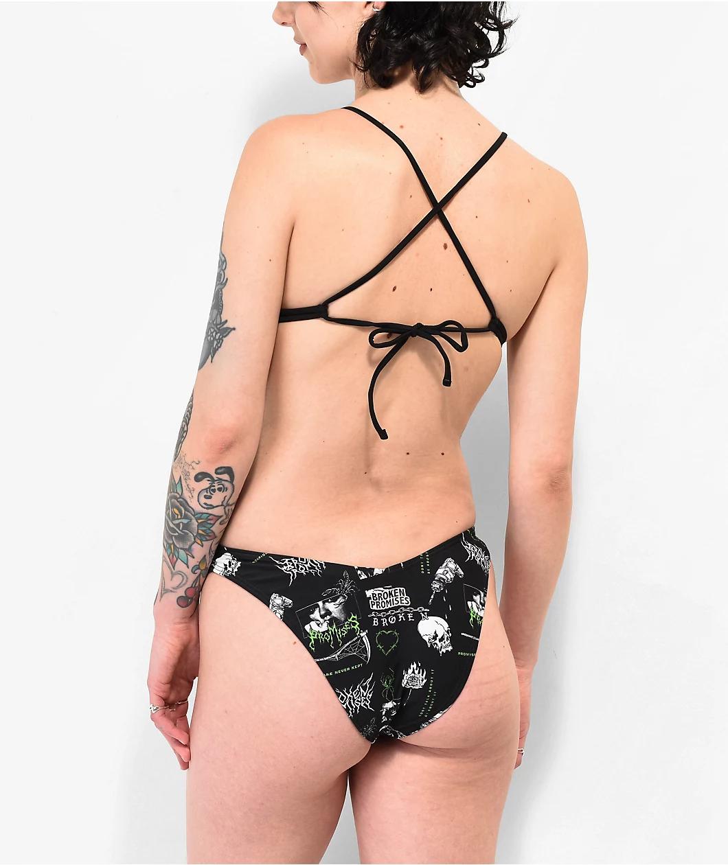 From Broken Promises comes the Undead bikini bottoms in a black colorway, showing off sublimated brand graphics throughout; including a rose on fire and spiders. These swim bottoms provide minimum coverage with a stylish high-leg design, complete with a f
