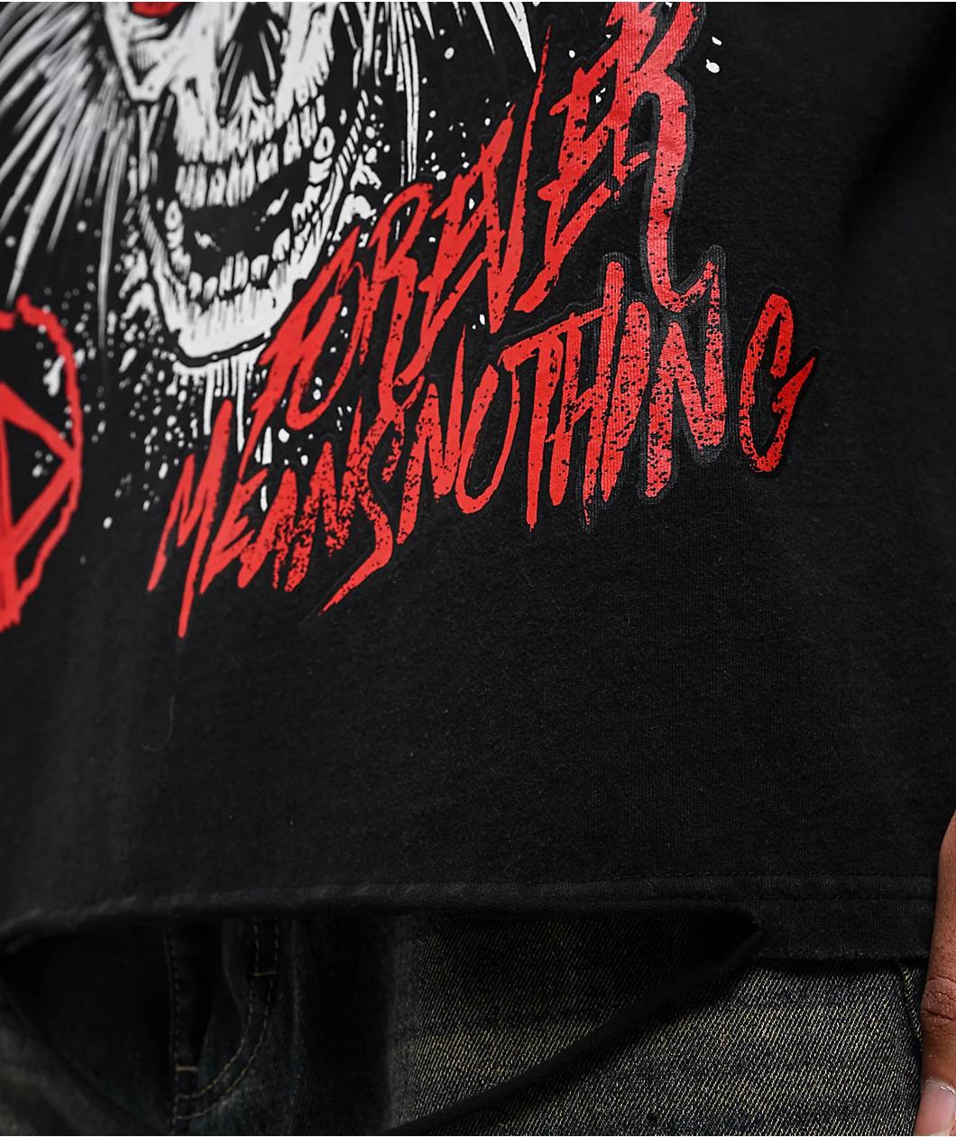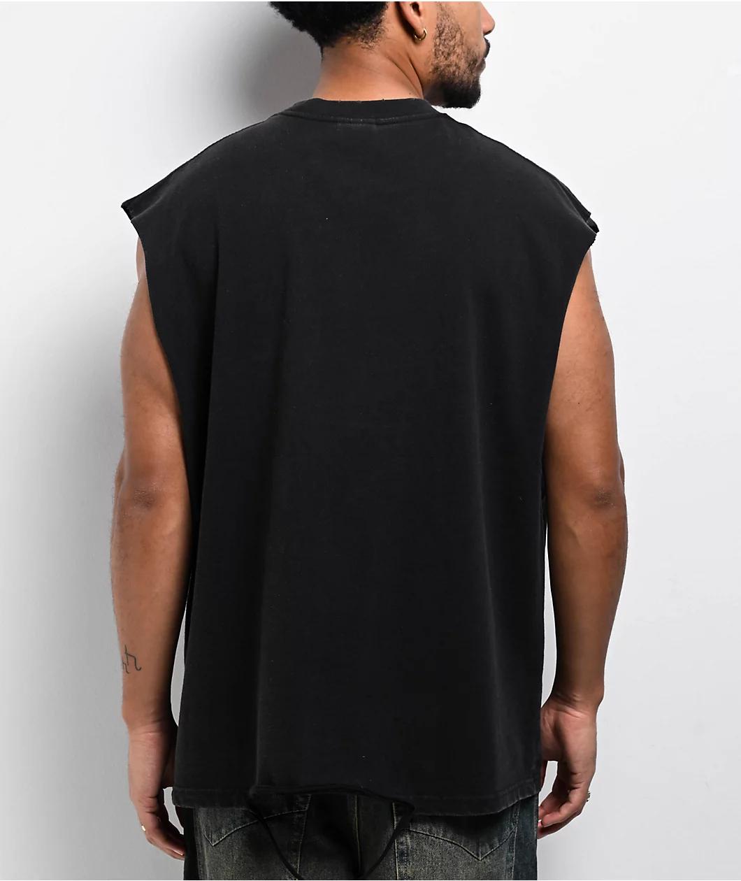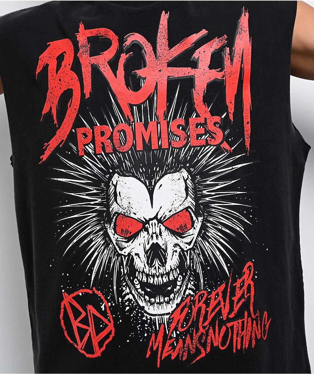 Looking vintage and lived-in with distressed detailing and unfinished hems, the Widows Peak tank top arrives in a solid black hue from Broken Promises. Boasting a screened, tough graphic of a spikey-haired skull with menacing red eyes surrounded by b