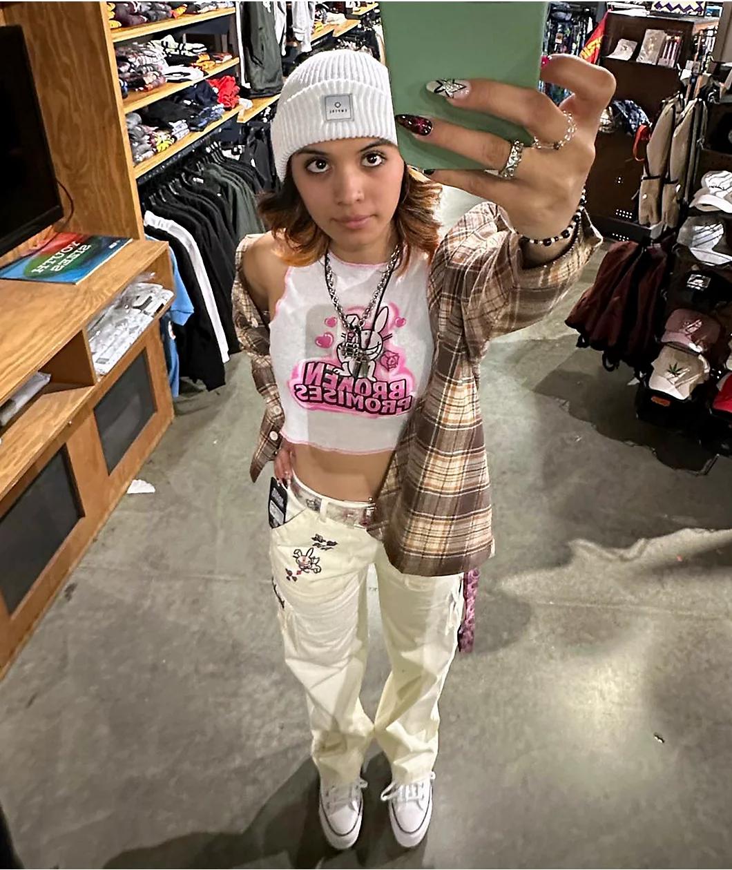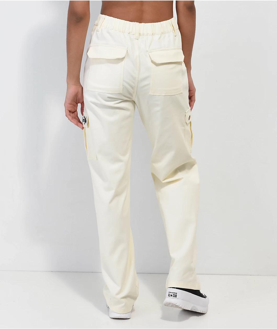 Broken Promises collaborates with Happy Bunny to bring the Focus On Me cargo pants in a crisp white colorway, giving colorful embroidery on the seat pockets of various flowers, butterflies and a Happy Bunny dressed as Cupid. These unique pants offer ample