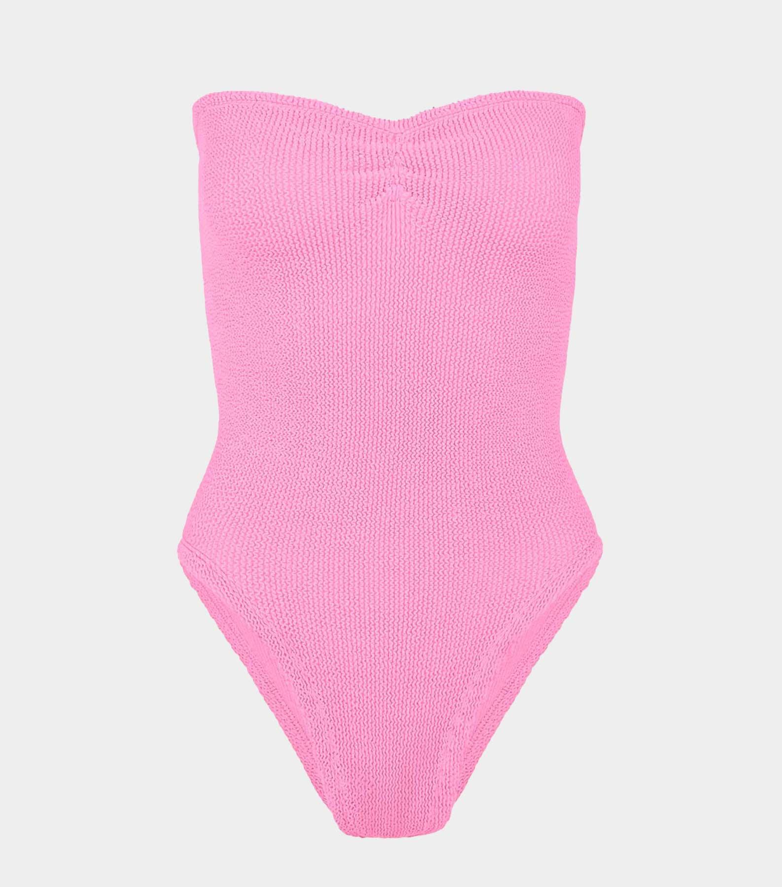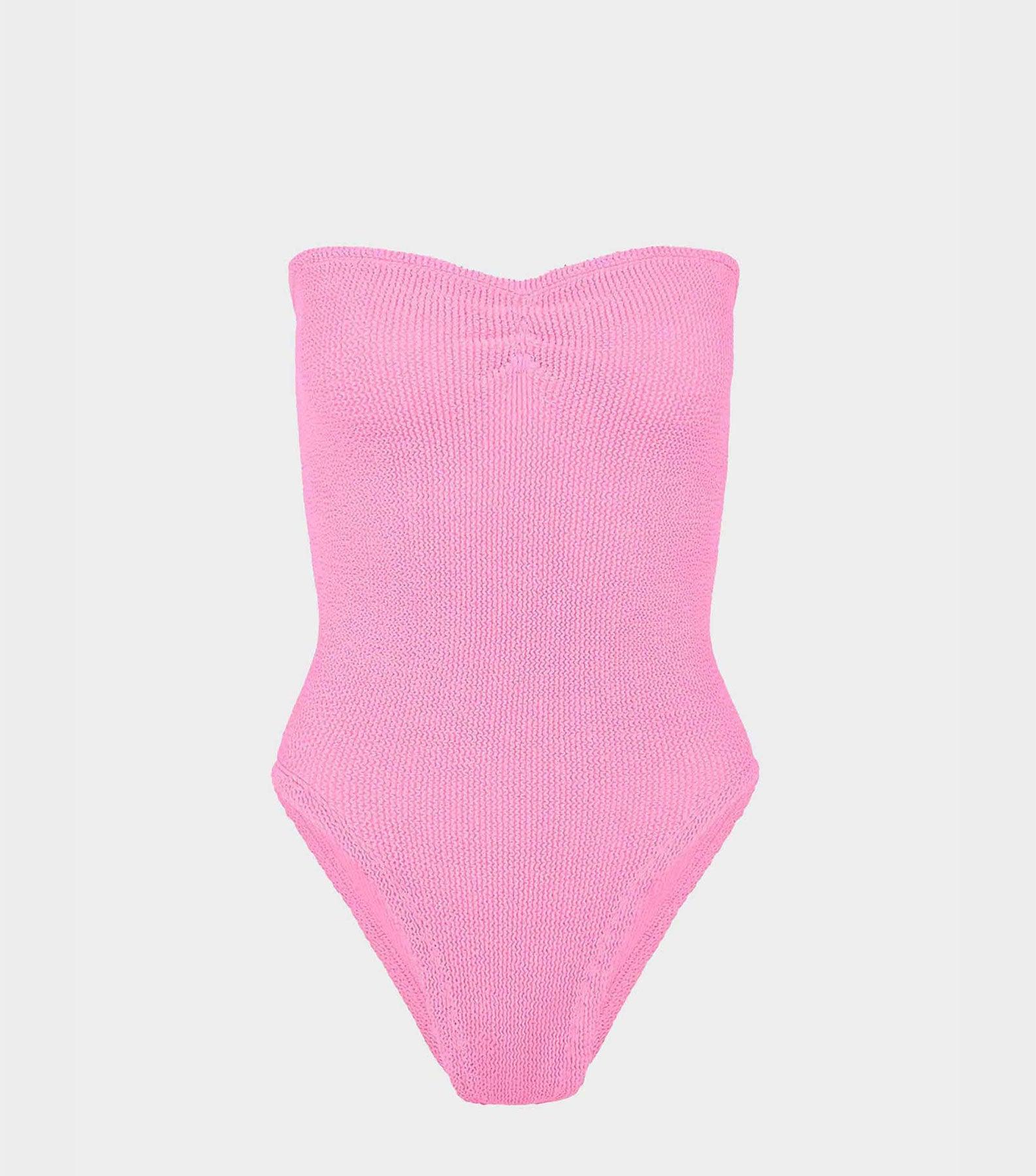 Strictly no tan lines in this strapless style. Minimal meets glam with the Brooke swimsuit's ruched sweetheart neckline and figure-sculpting silhouette.
