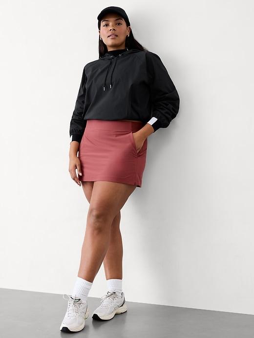 FOR: Your workday commute and weekend travels, from meetings to meetups FEEL: Recycled stretch fabric moves like a breeze while maintaining featherweight breathability FAVE: Hybrid-stretch waistband features smoothing support in the front and ribbed comfort in the back Two drop-in side pockets Secure-zip backpocket #719520