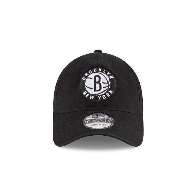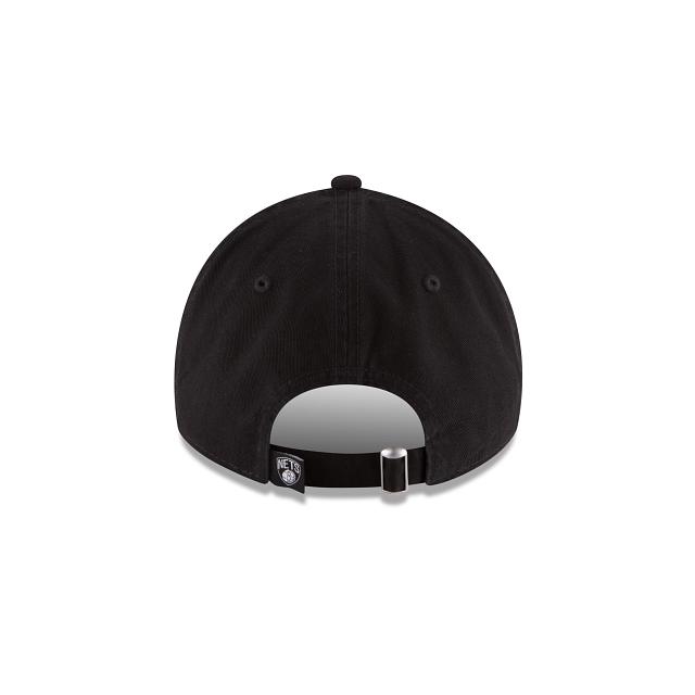 The Brooklyn Nets Core Classic 9TWENTY Adjustable Cap features an embroidered Nets logo at the front panels with a woven tab displaying the team logo on a D-Ring closure at the rear.