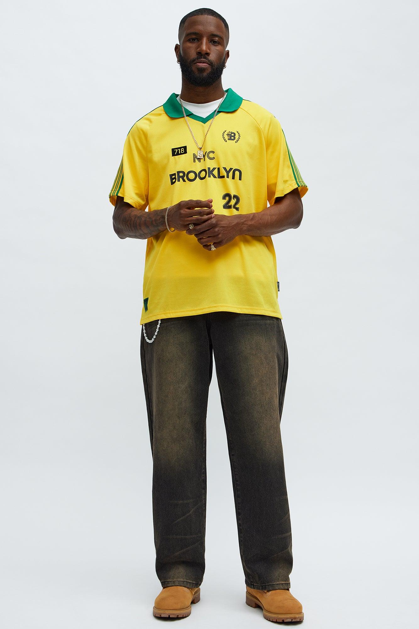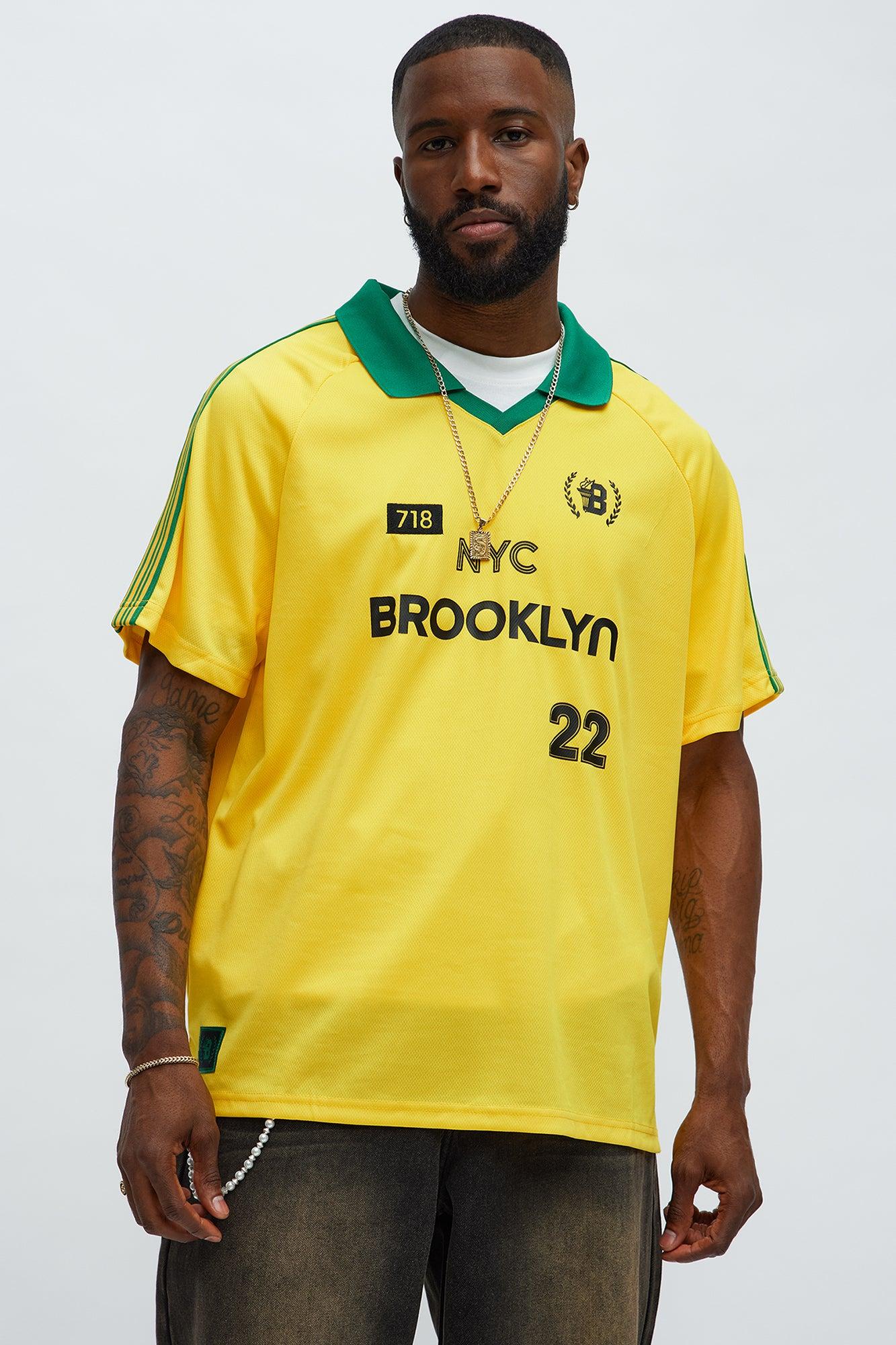 Available In Yellow/combo. Johnny Collar Contrast Trim Striped Front Graphic Details Color Block Details Back Brooklyn New York Graphic Details Short Sleeves Disclaimer: Due To The Printing Process A Difference In Saturation May Occur. Each Garment Is Unique. 100% Polyester Imported
