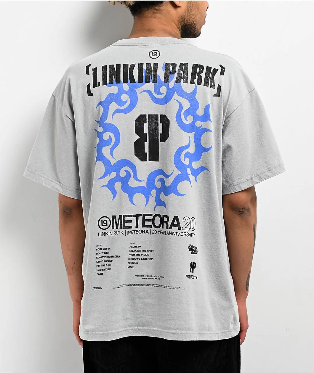 To celebrate the 20th anniversary of Meteora, the second studio album by band Linkin Park, Brooklyn Projects presents the Bot t-shirt in a "Cement" grey colorway. The front features art of a white, pink, and blue mecha robot for a futuristic look, wh