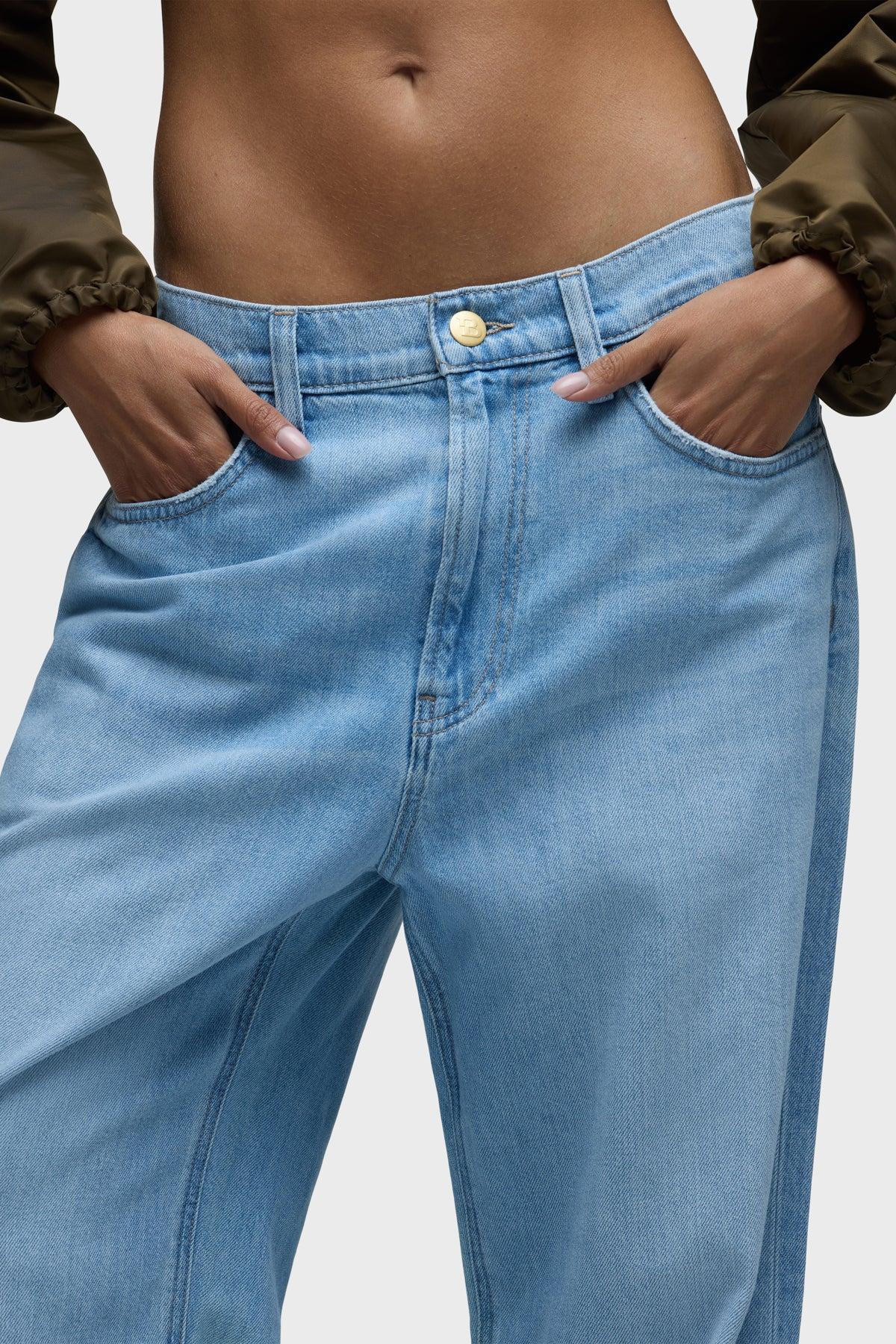 Description Part of our Brooks Nader collab capsule, the Brooks Low & Loose Jean in Poolside is designed to sit low on the hip with a baggy fit throughout the leg, and it has a clean finished hem. To elevate the look, we added gold branded buttons and a branded patch to the back waistband. This pair is made of lightweight Italian rigid denim in a light indigo wash with heavy stone washing, bleaching, whiskering, all-over hand-sanding, edge grinding and tacking at the pocket scoops. This capsule was curated by model Brooks Nader and features her personal closet must-haves. Product Details Front Rise: 12.75", Leg Opening: 23", Inseam: 31"Model Height 5'9"Model wearing size 25Measurements based on size 27 Fit & Care Content: 100% CottonMachine wash cold with like colorsDo not bleachTumble dry low or hang to dry