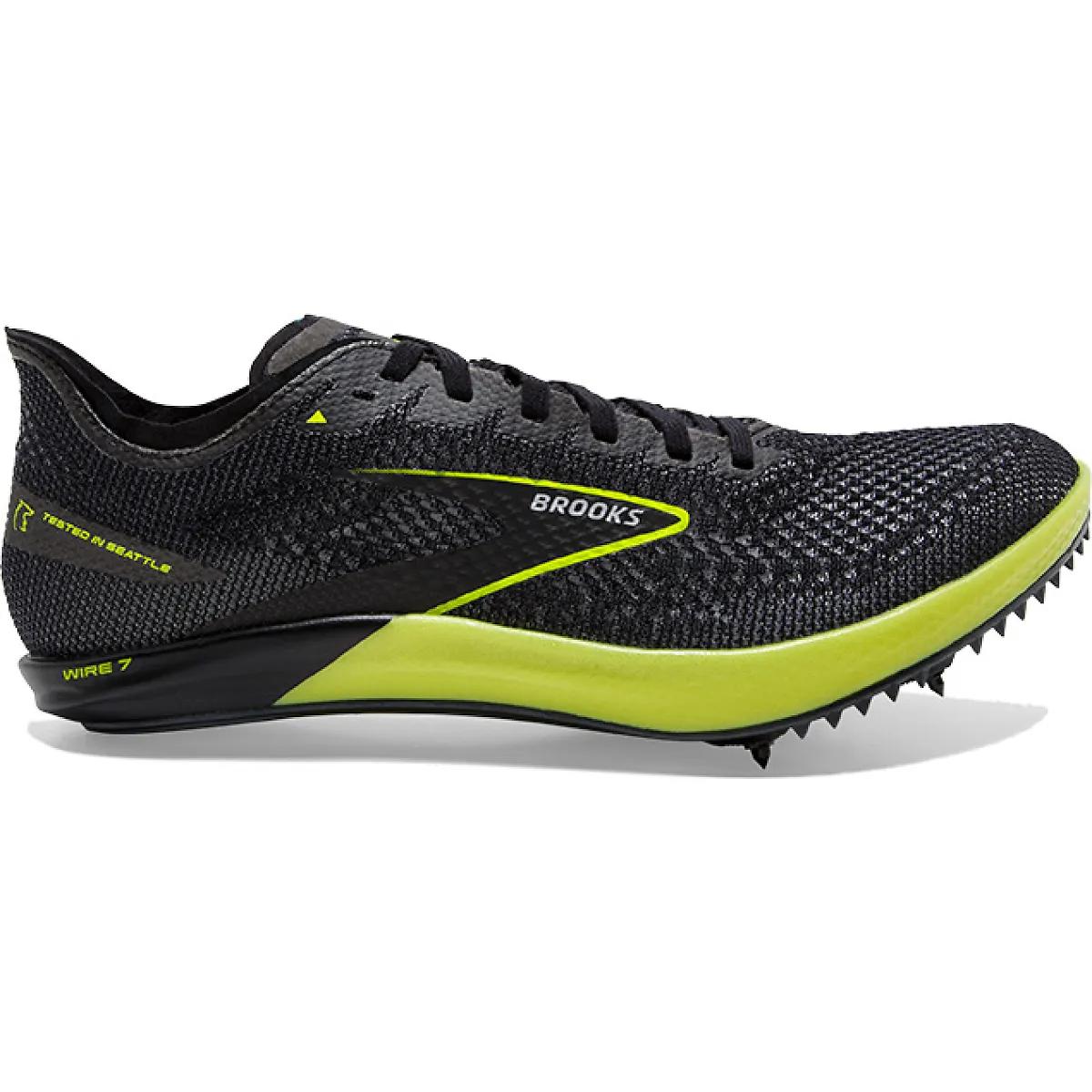 Go for the podium this year with the Brooks Wire 7. This long distance track spike is super lightweight, which helps get you to the finish line faster. Designed for long distance track events ranging from 1500 meters to 10K, this premium spike has everything you need to perform on race day. It includes a full-length Pebax Rnew Distance Plate to promote maximum efficiency during your run. The lightweight engineered woven upper feels as if it was made specifically for you and gives a socklike feel