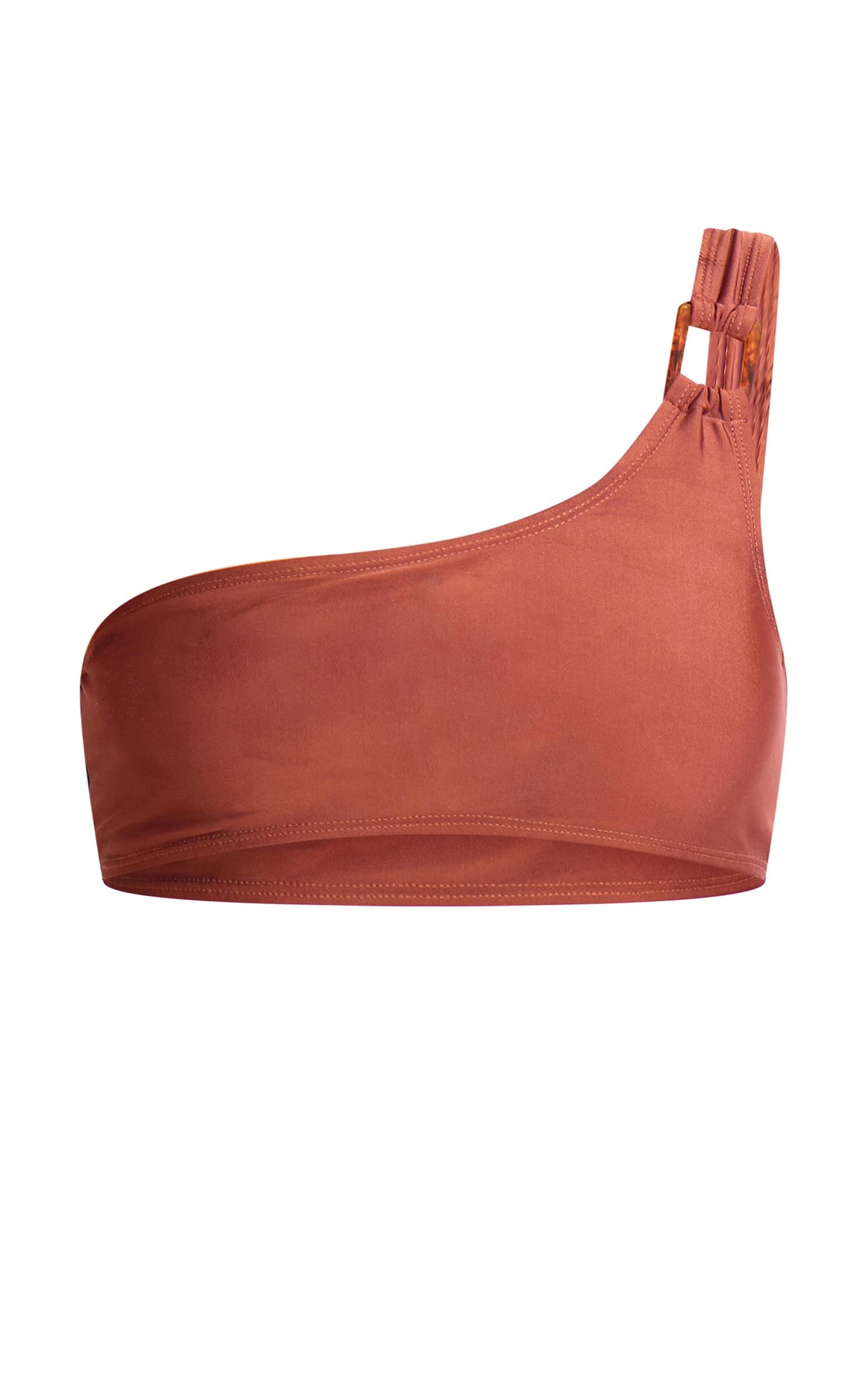 Add a touch of luxe to your swimwear collection with this brown buckle trim one shoulder bikini top, we just can't get enough. This bikini top features a brown material with a buckle detail and a one shoulder design. Pair this brown bikini top with the matching bottoms and statement accessories to have all the attention on you. Length approx 33cm/13inch (Based on a sample size UK 8) Model wears size UK 8/ EU 36/ AUS 8/ US 4Model Height - 5ft 7inchp]:!mb-0inch>Category: SwimwearProduct type: Bandeau Bikini TopColor: BrownMaterial: SwimDesign: PlainSleeves: SleevelessOccasion: Day