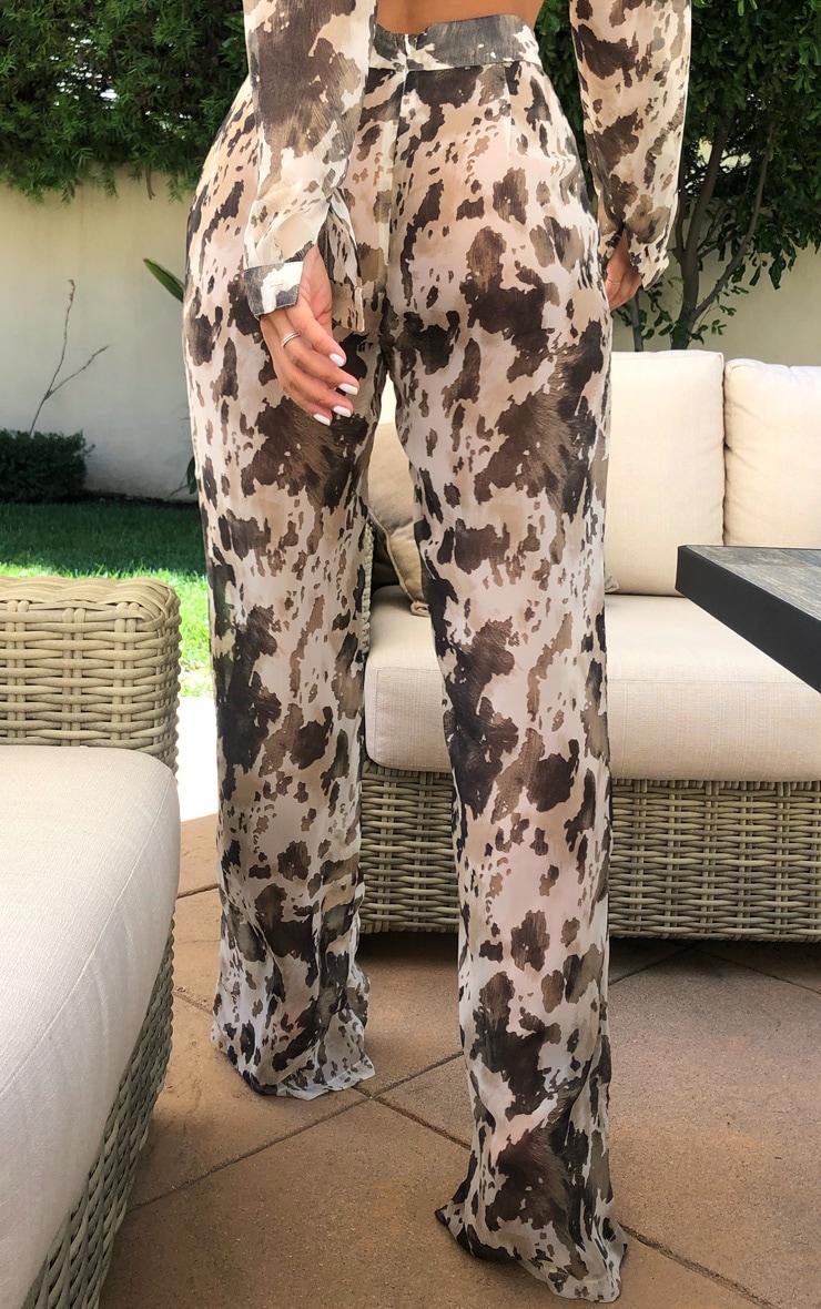 Take your summer collection to new heights with these beach flares, they're sure to a staple in your wardrobe. Featuring a brown cow print material with a button down design and an oversized fit, what more could you want? These cow print bottoms are perfect for those poolside days. Team these flared bottoms with the matching beach shirt, your fave bikini and sandals for a look we can't get enough of. Length approx 81.5cm/32inch (Based on a sample size UK 8)Model wears size UK 8/ EU 36/ AUS 8/ US 4Model Height - 5ft 6inchp]:!mb-0inch>Category: SwimwearProduct type: Beach PantsColor: BrownMaterial: ChiffonDesign: Print