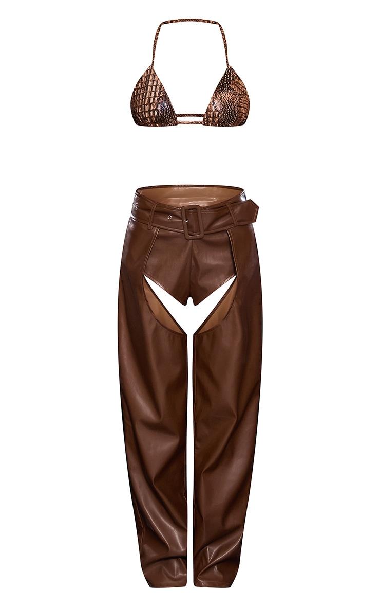 You are guaranteed to earn best dressed in this brown cowgirl Halloween costume. This costume includes brown pants and a snake print bra, how can you say no? This cowgirl costume is sure to earn you best dressed. Simply style this Halloween costume with the matching hat, heels and gold accessories for a look that will make heads turn. Model wears size XL Set Includes: Pants Bra Hat Sizes: XS = 6/8 S = 8/10 M = 10/12 L = 12/14 XL = 14/16 Warning: This is not a toy. Adult use onlyModel Height - 5ft 8inchp]:!mb-0inch>Category: AccessoriesProduct type: CostumeColor: BrownOccasion: Evening