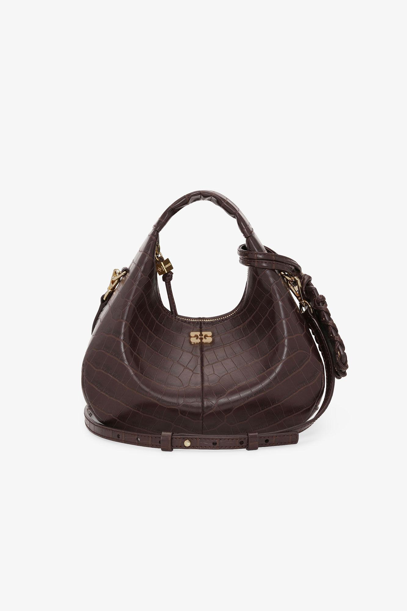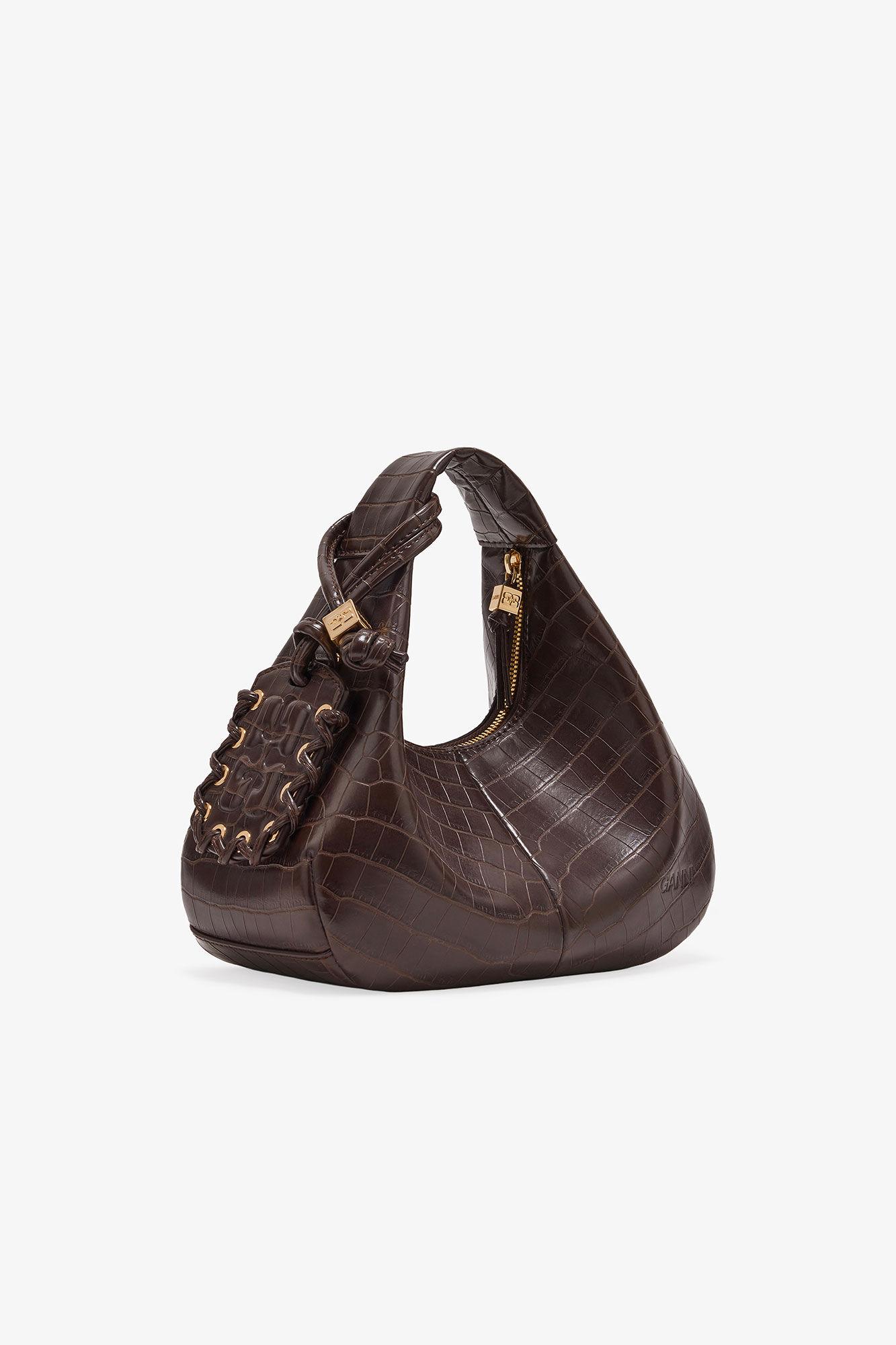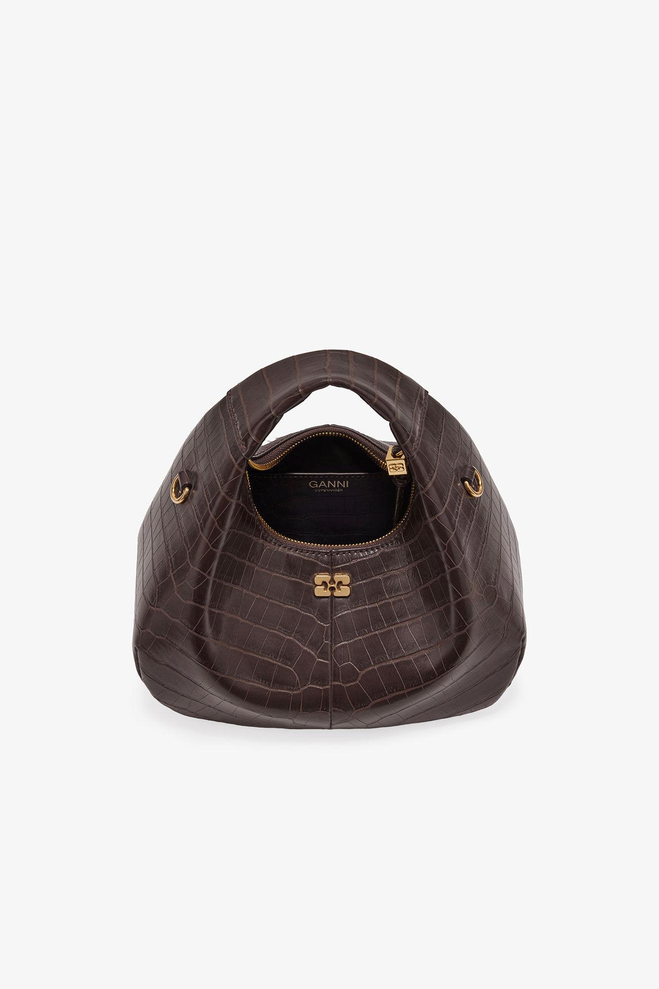 Brown Croco Mini Hobo Bag