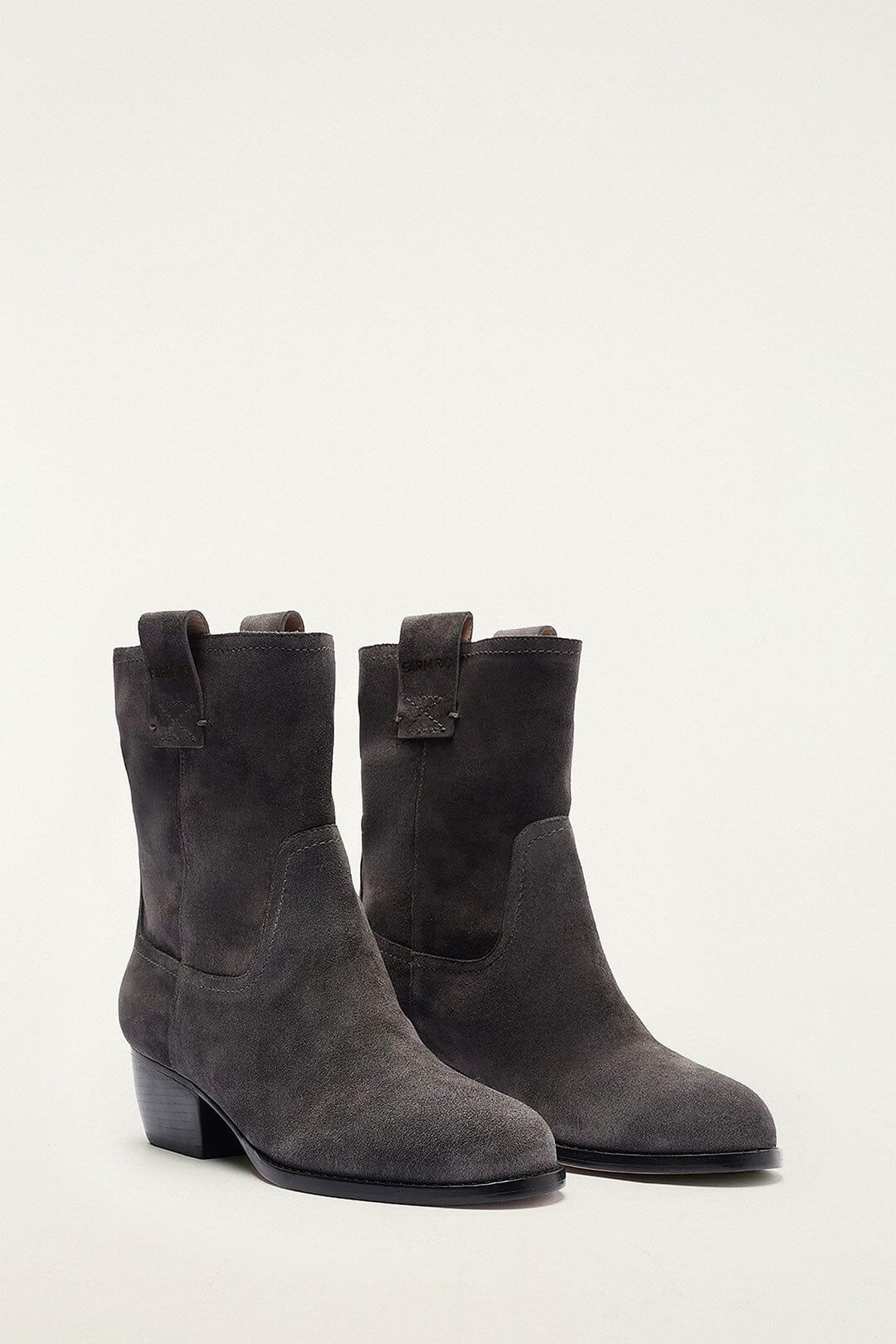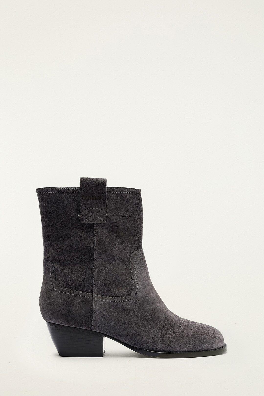 Step into effortless cool with the Grey Soft Suede Boot by FARM Rio. Crafted in luxuriously soft suede, this boot pairs deep charcoal and smoky grey shades in a sleek, subtly paneled silhouette. The mid-height, gently angled heel adds a playful lift while the clean, rounded toe keeps the design relaxed and approachable. A timeless, versatile piece that folds warmth and casual elegance into every step. FARM Rio leather products support responsible manufacturing via the Leather Working Group.