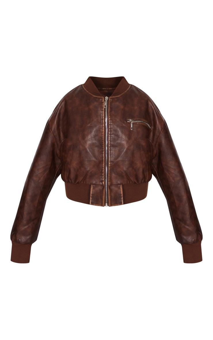 Refine your outerwear edit with this faux leather bomber, reimagined with a mottled texture for subtle depth. The rich brown hue offers a grounding counterpoint to bolder ensembles, whilst the zip front allows for versatile styling. Note the considered detailing throughout, a marker of enduring quality. Consider pairing this jacket with tailored pants from our bottoms collection for a considered approach to off-duty dressing. Length approx 48cm/19inch (Based on a sample size UK 8) Model wears size UK 8/ EU 36/ AUS 8/ US 4Model Height - 5ft 5inchp]:!mb-4inch>Category: OuterwearProduct type: BomberColor: BrownOccasion: Day