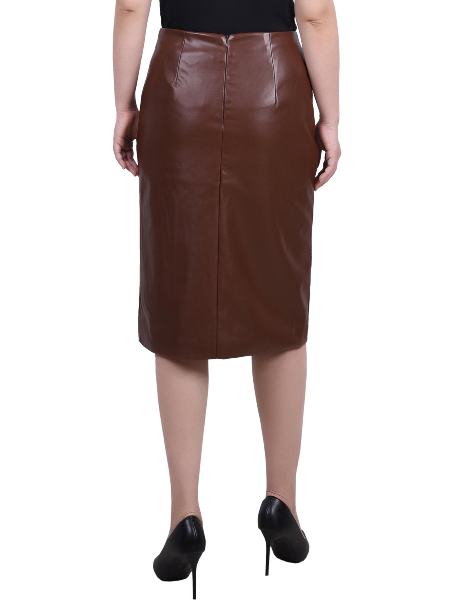 Brown Faux Leather Slim Skirt - Petite