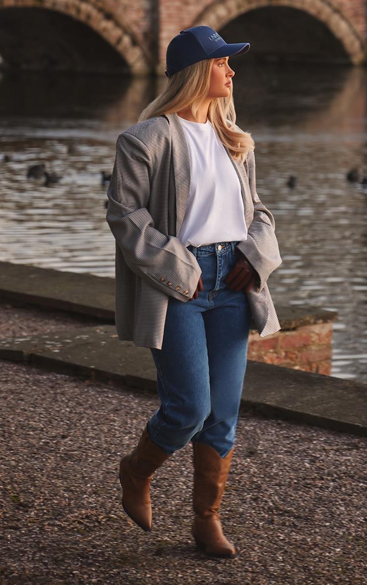 Elevate your wardrobe with this brown houndstooth shoulder padded oversized curved hem blazer. Its brown houndstooth material and shoulder-padded design are so on trend this season. This blazer has an oversized fit with a curved hem which adds all the chic vibes to your look. Style effortlessly with a basic top, jeans and a cap for a look that will get everyone talking. Length approx 74cm/29inch (Based on a sample size UK 8) Model wears size UK 8/ EU 36/ AUS 8/ US 4 Model Height - 5ft 5inch