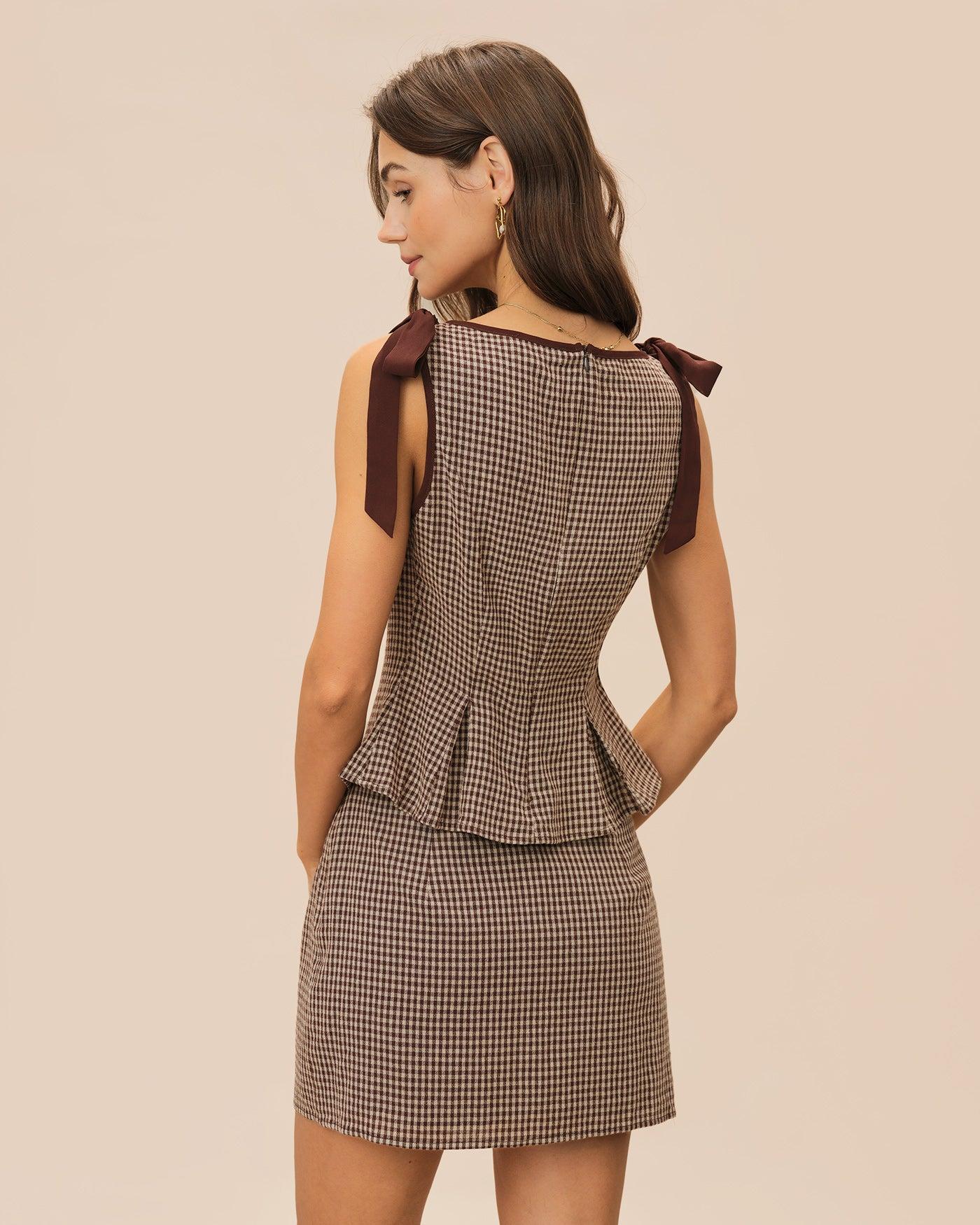 Brown Plaid Straight Mini Skirt