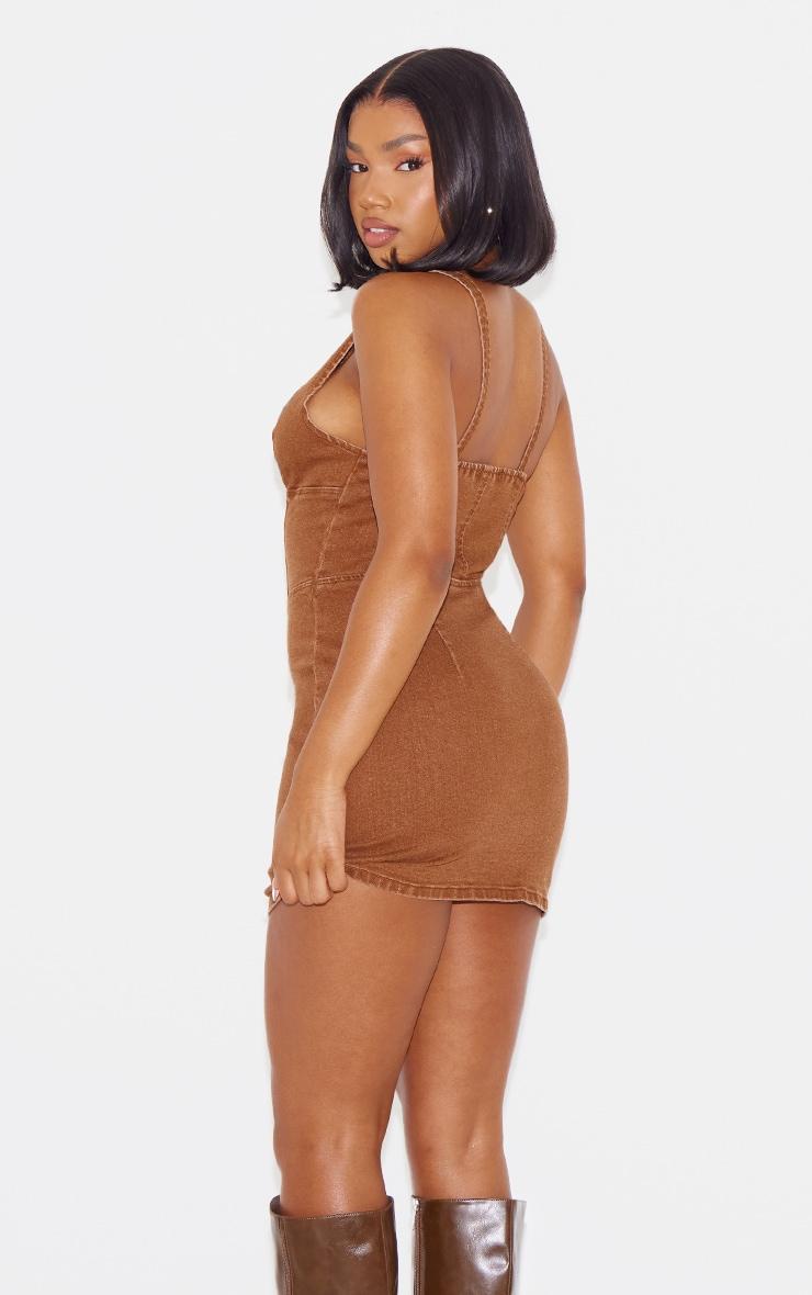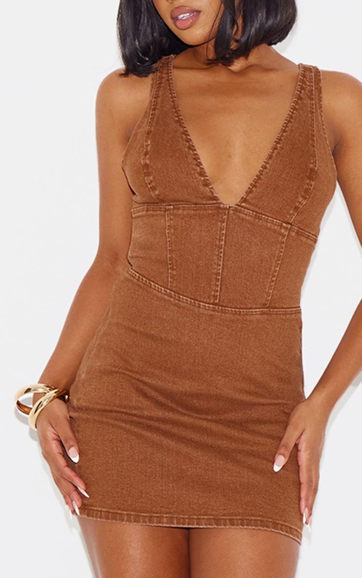 We're crushing on this brown plunge corset style denim mini dress for a weekend look that will have all eyes on you. Brought to you in a dreamy brown shade, with a plunge design, denim material and corset style for the ultimate figure-flattering fit, how can you resist? Style with some knee length leather look boots and gold accessories to really make an impact. Length approx 83cm/32.5inch (Based on a sample size UK 8) Model wears size UK 8/ EU 36/ AUS 8/ US 4Model Height - 5ft 7inchp]:!mb-0inch>Category: DenimProduct type: Denim Day DressColour: BrownMaterial: Rigid DenimOccasion: Evening