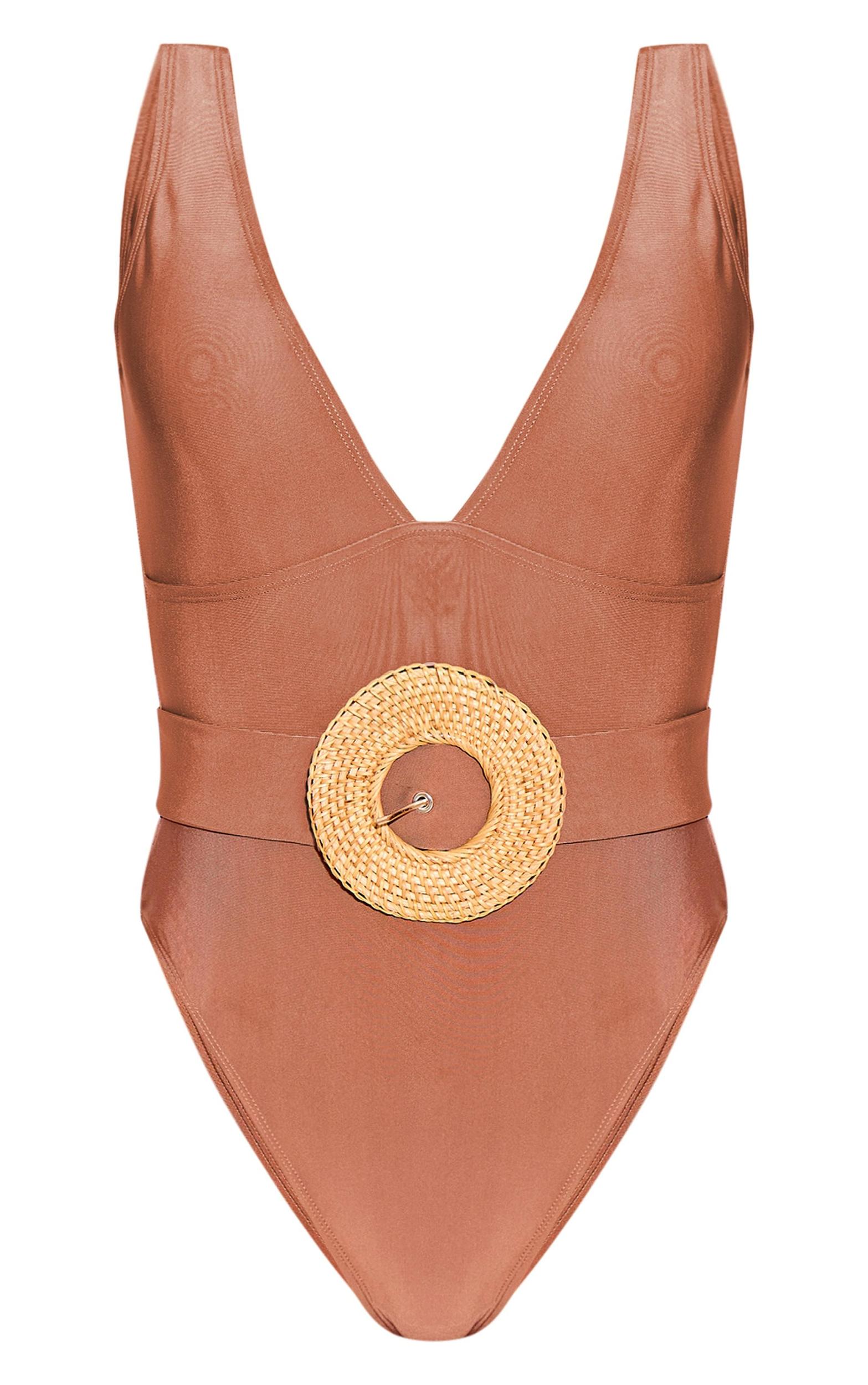 Your poolside look is calling out for an update with this brown plunge rattan belted high leg swimsuit. Brought to you in a brown rattan material with a belted design that will give you a flattering fit like no other. This high leg swimsuit is sure to make you the center of attention. Team with your fave accessories for a fool proof finish that will get all heads turning. Length approx 66cm/26inch (Based on a sample size UK 8) Model wears size UK 8/ EU 36/ AUS 8/ US 4Model Height - 5ft 6inchp]:!mb-0inch>Category: SwimwearProduct type: SwimsuitColor: BrownMaterial: SwimOccasion: Day