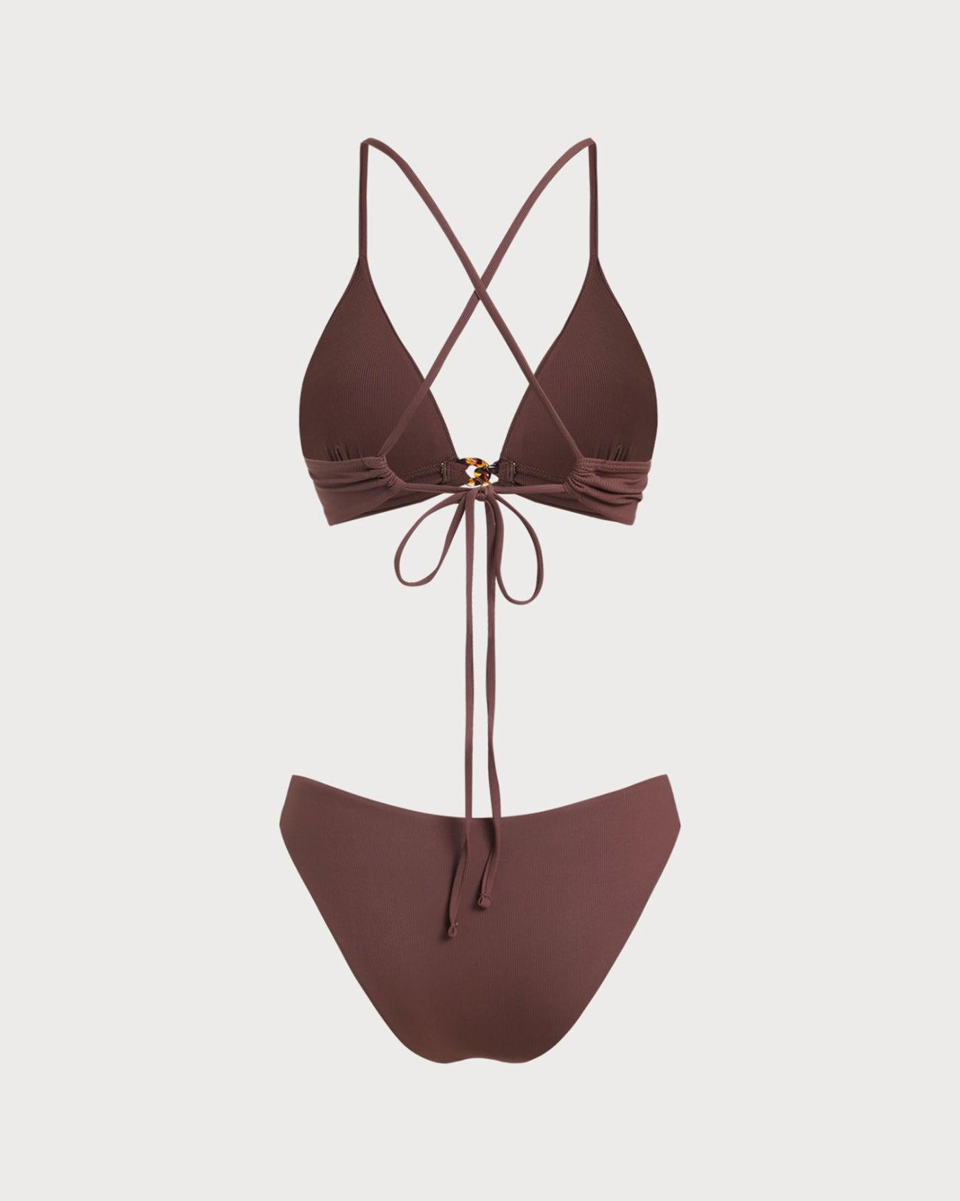 - Back Neckline: Strappy - Fabric Stretch: High Stretch - Waist: Low Waisted - Closure Type: Elastic Waist - Pattern Type: Solid - Embellishment: Knot, Tie, Cut Out, O-Ring, Ribbed, Elastic Waist - Neckline: Plunging - Fabric: Polyamide 85.0%, Spandex 15.0% - Lining: Polyester 85.0%, Spandex 15.0% - Leg Opening: Mid Cut Leg - Padding: Removable Soft Cups - Bottom Coverage: Moderate Bottom Coverage - Bra Coverage: 3/4 Cup - Top Style: Bralette - Fabric Types(Pattern Style): solid
