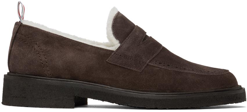 Brown Shearling Penny Loafers