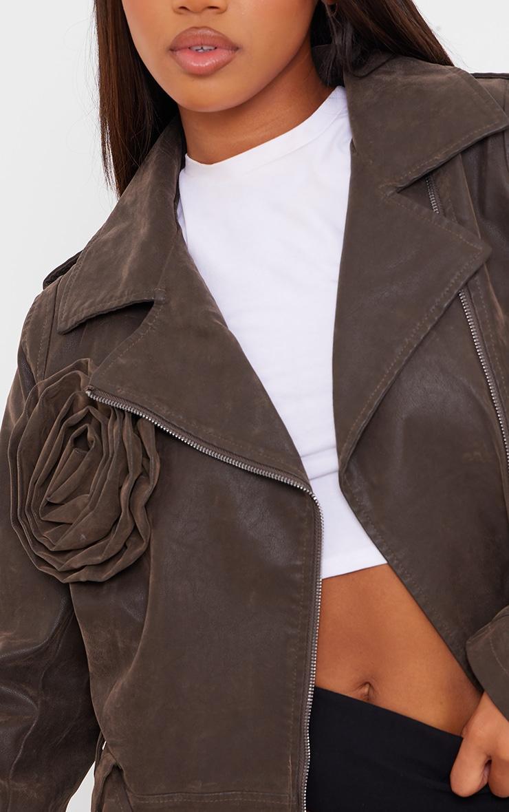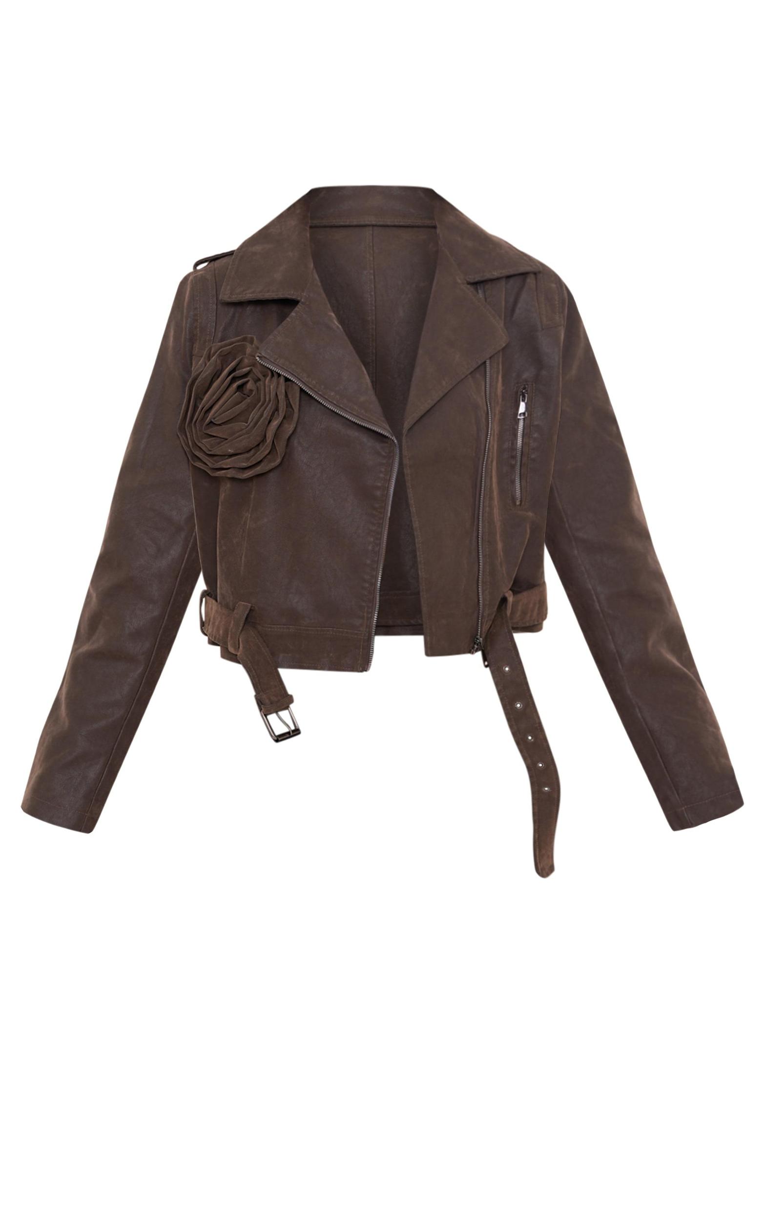 Switch up your new season style game with this brown soft faux leather flower detail crop jacket, you won't be able to resist. This jacket features a brown soft faux leather material with a flower detail and a cropped length, it is perfect for dressing up or down. Team with blue jeans, sneakers and hoop earrings for a look everyone will want. Length approx 48cm/19inch (Based on a sample size UK 8) Model wears size UK 8/ EU 36/ AUS 8/ US 4Model Height - 5ft 5inchp]:!mb-0inch>Category: OuterwearProduct type: Biker JacketColor: BrownSleeves: LongOccasion: Day