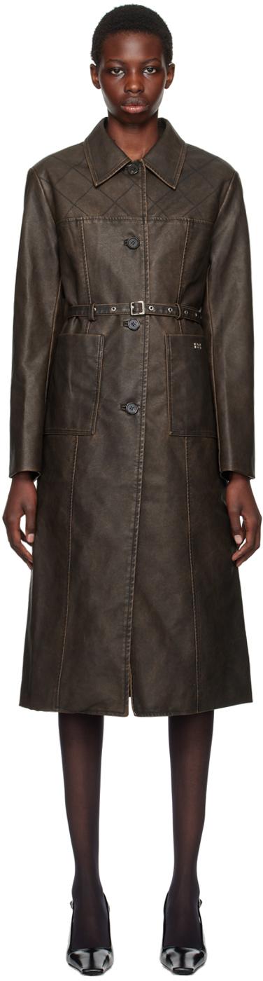 Grained faux-leather coat. Fading throughout.