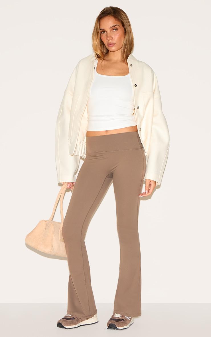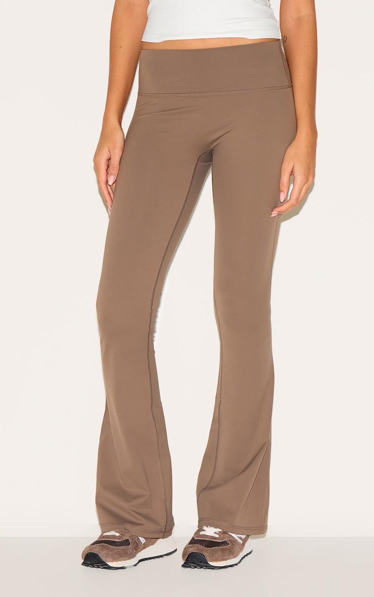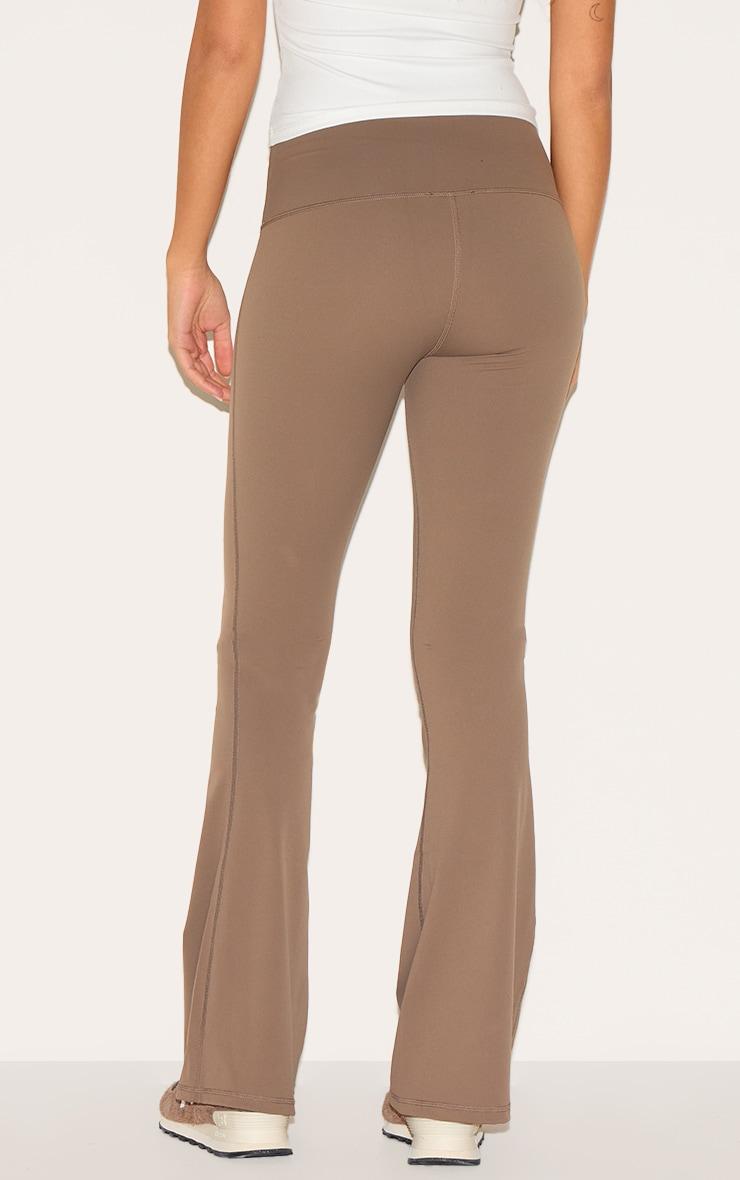 Elevate your workout wardrobe with these brown sculpt high waist flare yoga Pants. Made from a brown sculpt material with a high waist design and a flattering flared leg fit, how can you resist? Pair these yoga Pants with the matching top and sneakers for a look that is perfect for gym styling. Length approx 86.5cm/34inch (Based on a sample size S) Model wears size XLModel Height - 5ft 9inchp]:!mb-0inch>Category: ActivewearProduct type: LeggingsColor: BrownMaterial: Sculpt ActiveDesign: PlainOccasion: Day