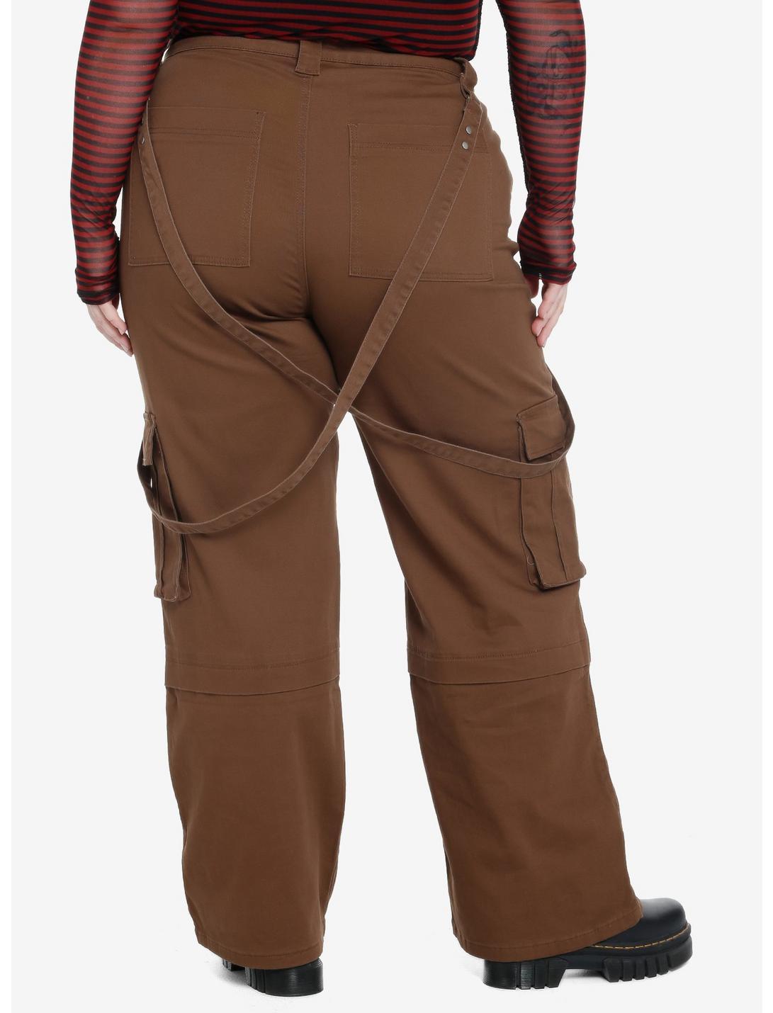 Social Collision Brown Wide Leg Suspender Pants Plus Size