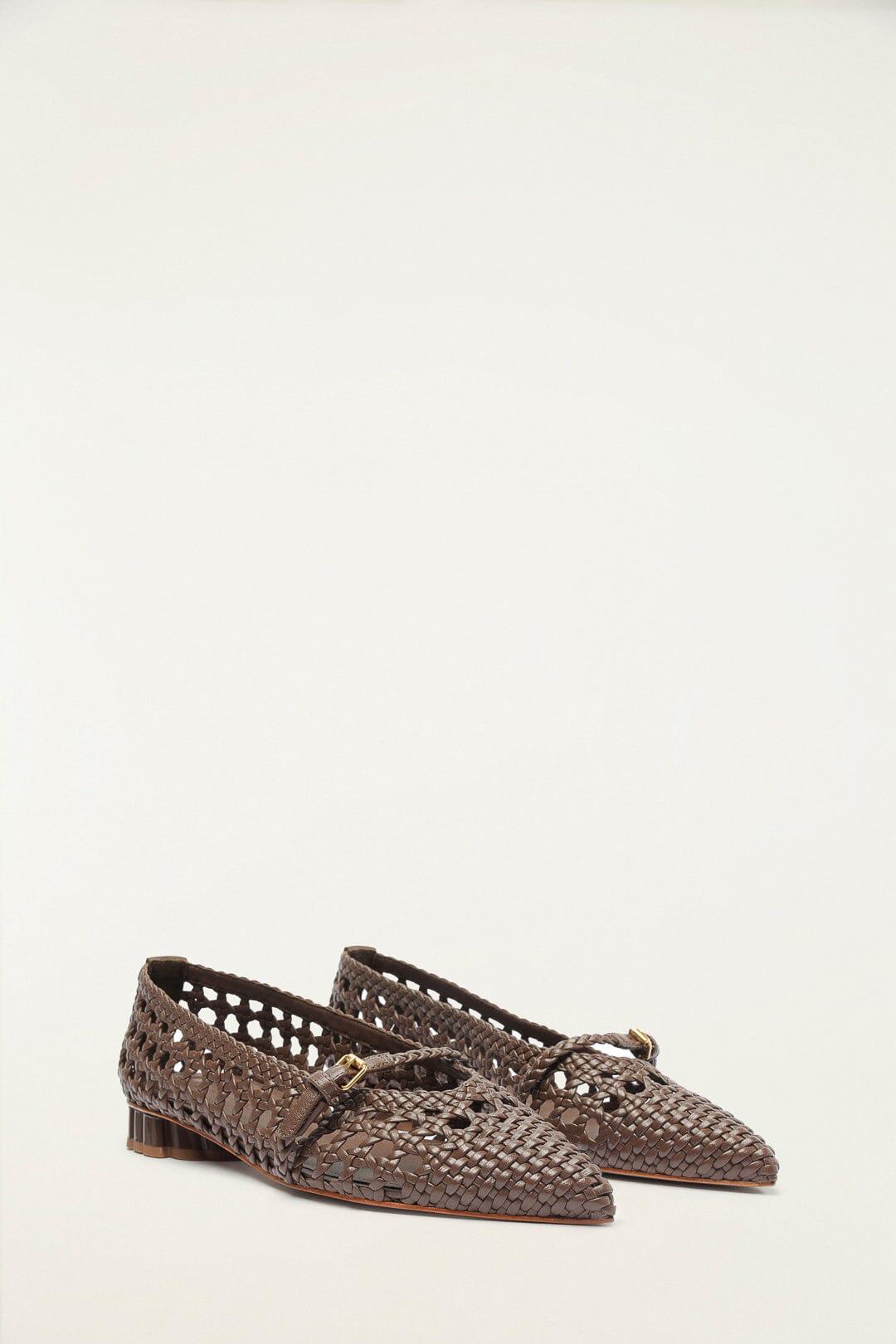 Step into effortless charm with the Brown Woven Mary Jane Ballerina by FARM Rio. This delicate silhouette showcases a rich brown woven texture that breathes life into classic ballerina elegance. The pointed toe and sculpted low heel add subtle sophistication, while the woven Mary Jane strap playfully embraces your foot with warmth and character. Soft and airy, it invites a natural grace to every step, blending comfort with a distinct artisanal spirit.