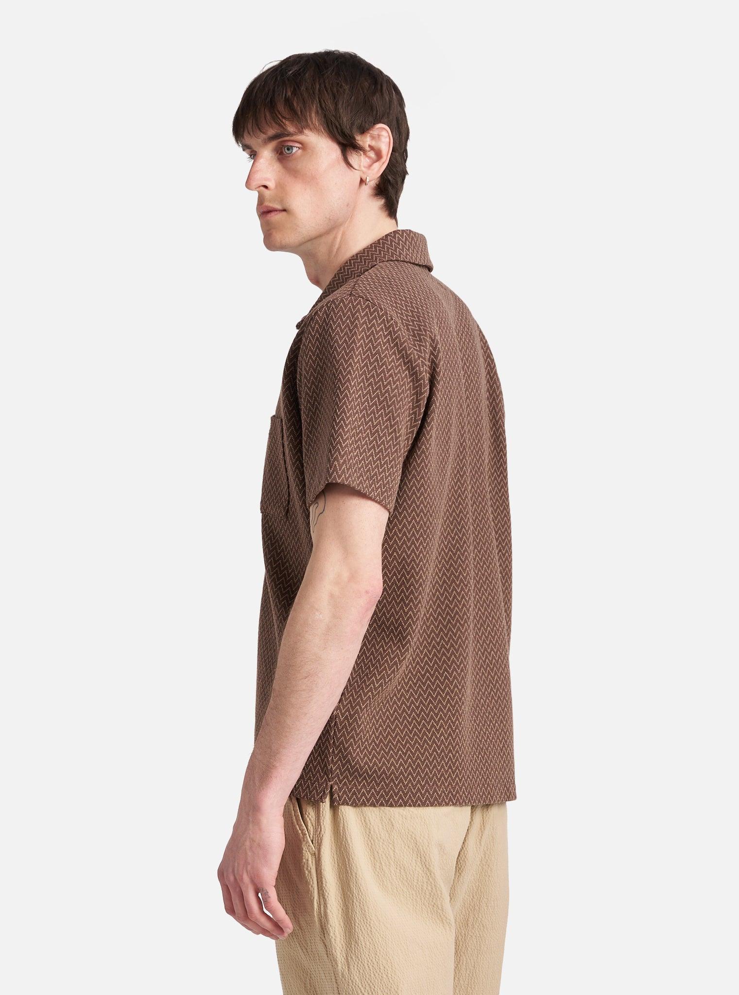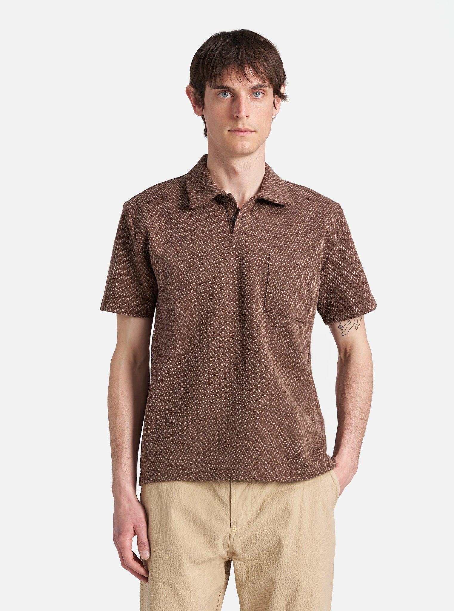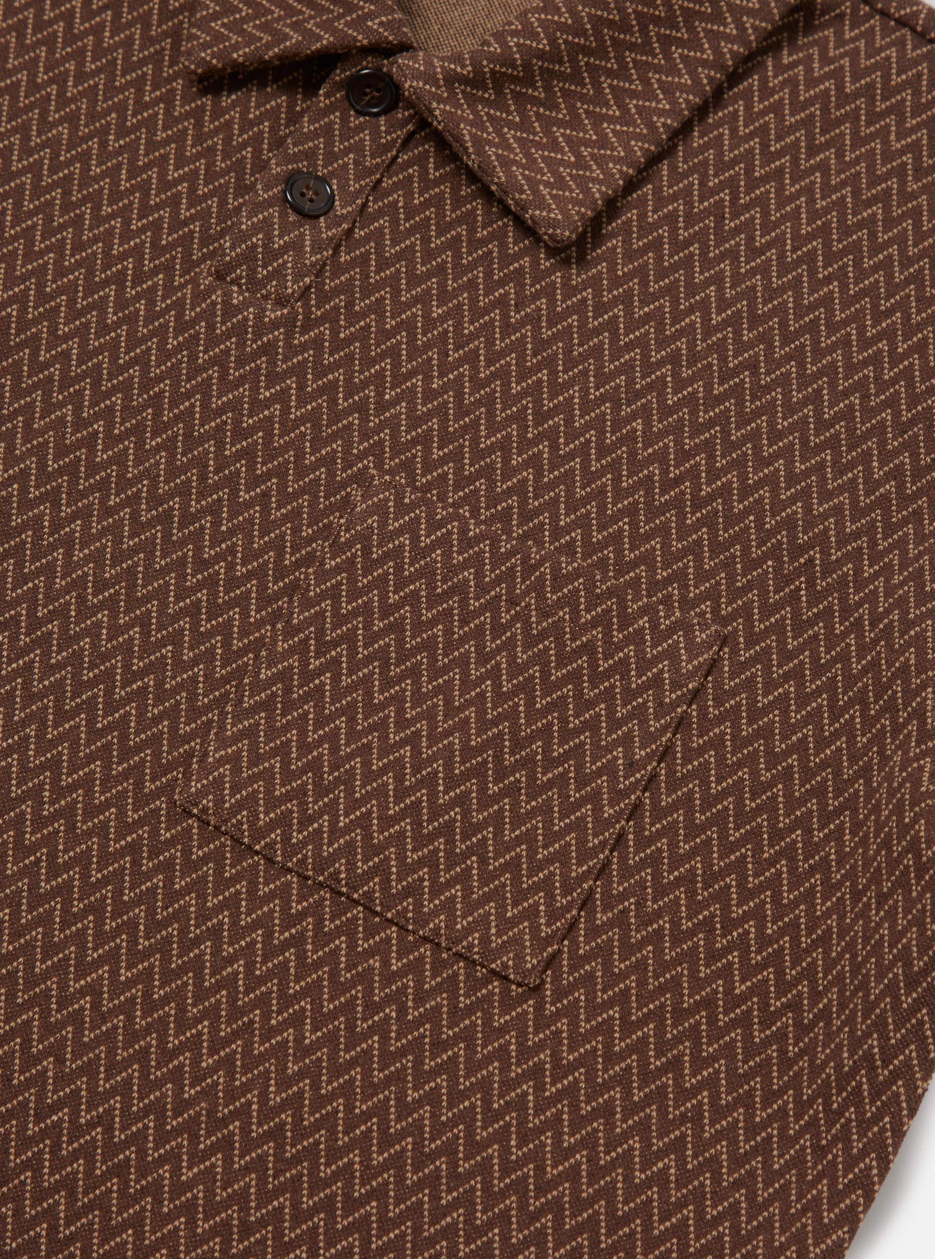 An overhead polo-style shirt, with an easy, everyday feel. The ideal blend of casual and smart, with a self-fabric collar and front patch pocket. Our model is 6' 0'' with a 37' Chest and is wearing a size ‘Large.’ A not-so-fleecey fleece, with a smooth, slightly structured medium-weight jacquard knit and a zig zag pattern. • Comfortable fit. • Simple one-piece collar. • Large chest pocket. • Split hem. • Fabric Content: 62% Cotton, 20% Recycled Polyester, 10% Polyester, 6% Polyamide, 2% Elastane. • Washcare: Wash at 30 degrees. Do not bleach. Do not tumble dry. Cool iron. Do not dry clean. Wash like colours together. Do not iron decoration. • Please be aware that the measurements above are technical measurements that are based on the garment laid flat and are useful as a general guide only. Measured in Centimetres. XS S M L XL XXL XXXL Centre Back Length. 62.5 64.5 66.5 68.5 70.5 72.5 74.5 Chest Width - 2.5cm Below Armhole. 54 56 58 60 62 65 66 Sleeve Length - From Shoulder (Incl. Cuff). 21 22 23 24 25 26 27 Across Shoulder. 41 43 45 47 49 51 53