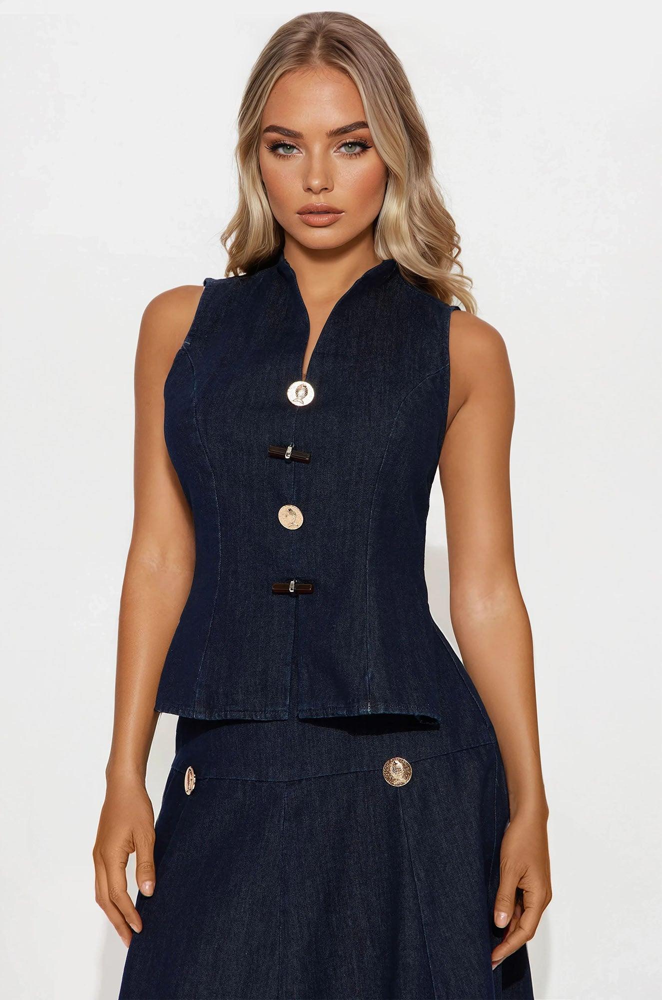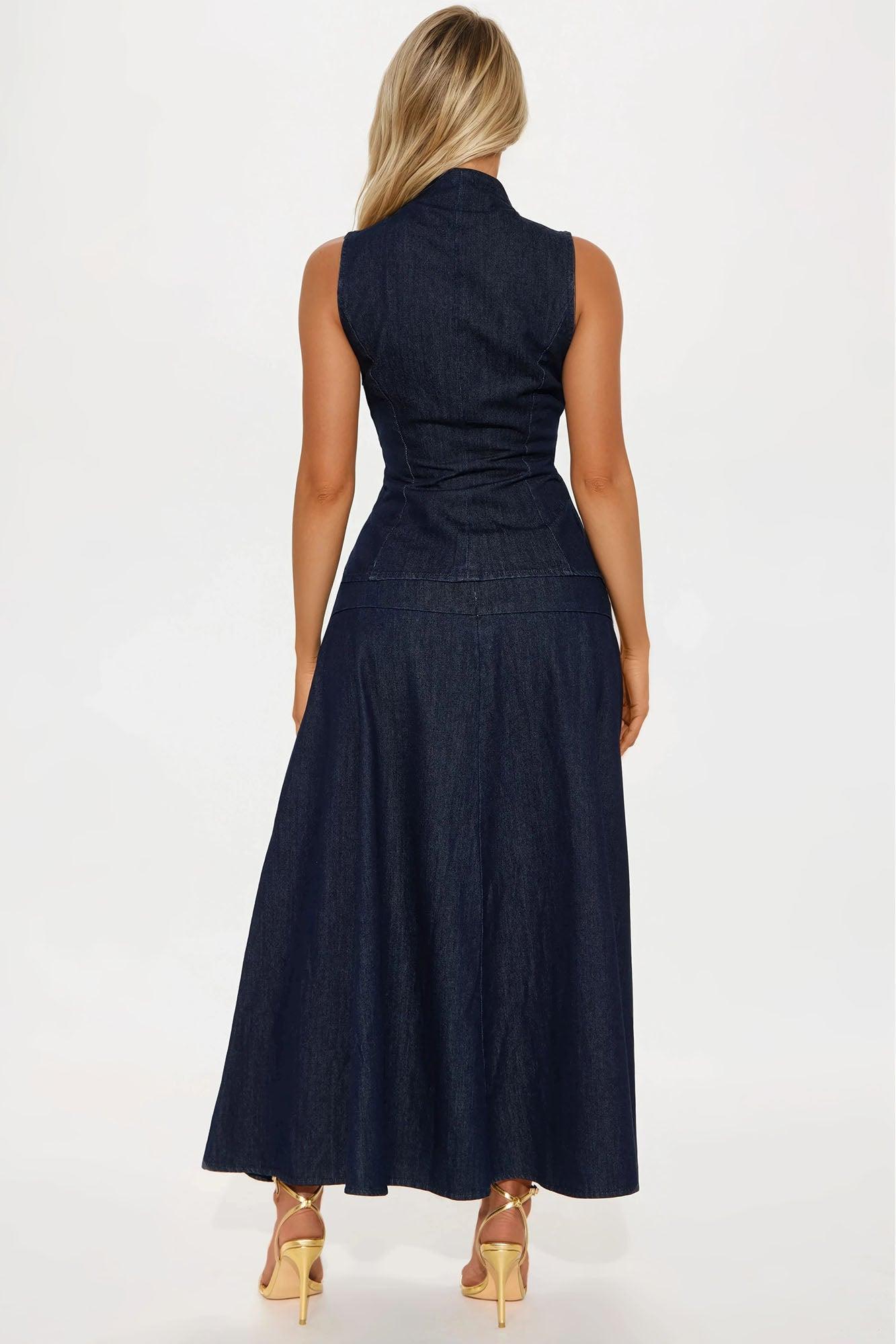 Brunch Date Denim Maxi Skirt Set - Dark Wash Female