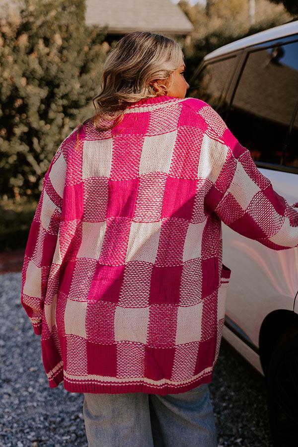 - Shine through the cozy season with this must-have cardigan! Featuring a trendy check pattern and eye-catching shimmering buttons, it's the perfect layering piece for effortless style. Embrace casual glam with this darling cardigan.