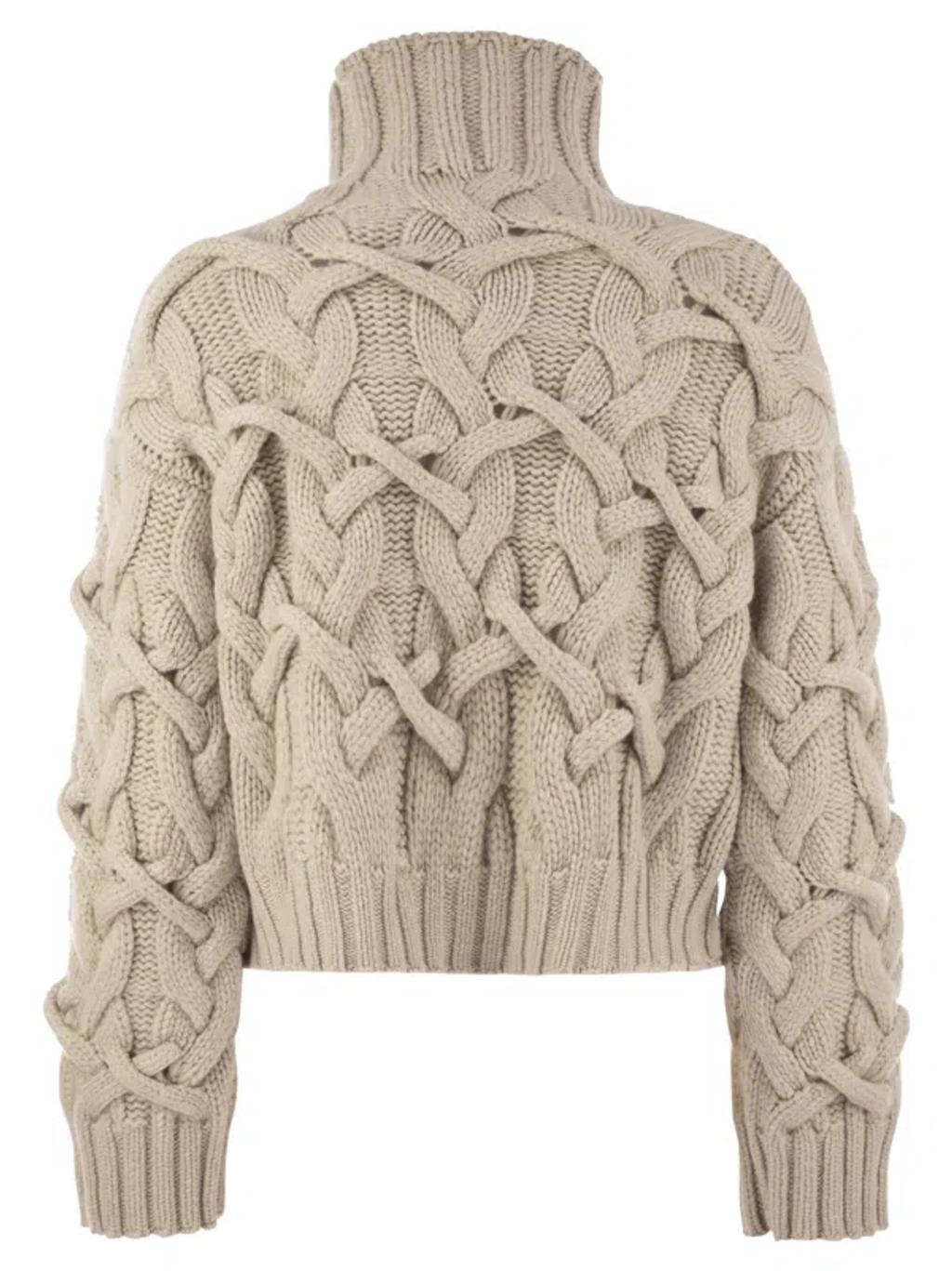 Shop Brunello Cucinelli Braided Sweater Sweaters And Cardigans Beige In Neutral from 850+ stores, starting at $2205. Brunello Cucinelli's sweater has a unique interlocking cable-knit finish that gives it a cool 3D effect. It's made from soft cashmere and has a chunky turtleneck and ribbed trims. Wear yours with a pair of the label's relaxed tailoring.- For Women.