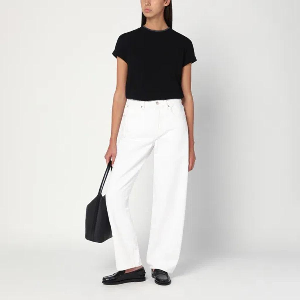 Shop Brunello Cucinelli Women Stretch Cotton Jersey T-shirt With Precious Faux-layering In Black from 800+ stores, starting at $323. Brunello Cucinelli flat cotton Tshirt embellished with monili neck trim Crew neckline; hook/keyhole back Short sleeves; rolled cuffs Rekaxed fit Pullover style Cotton Made in Italy